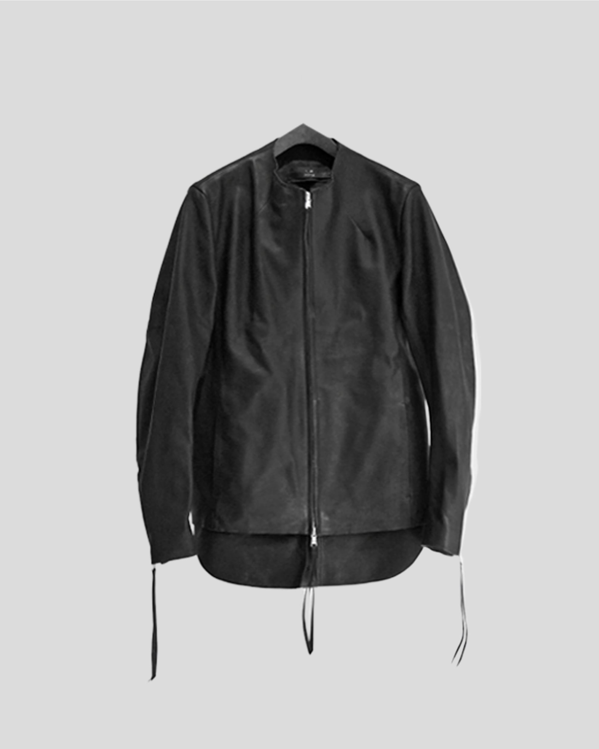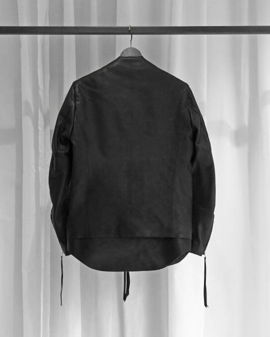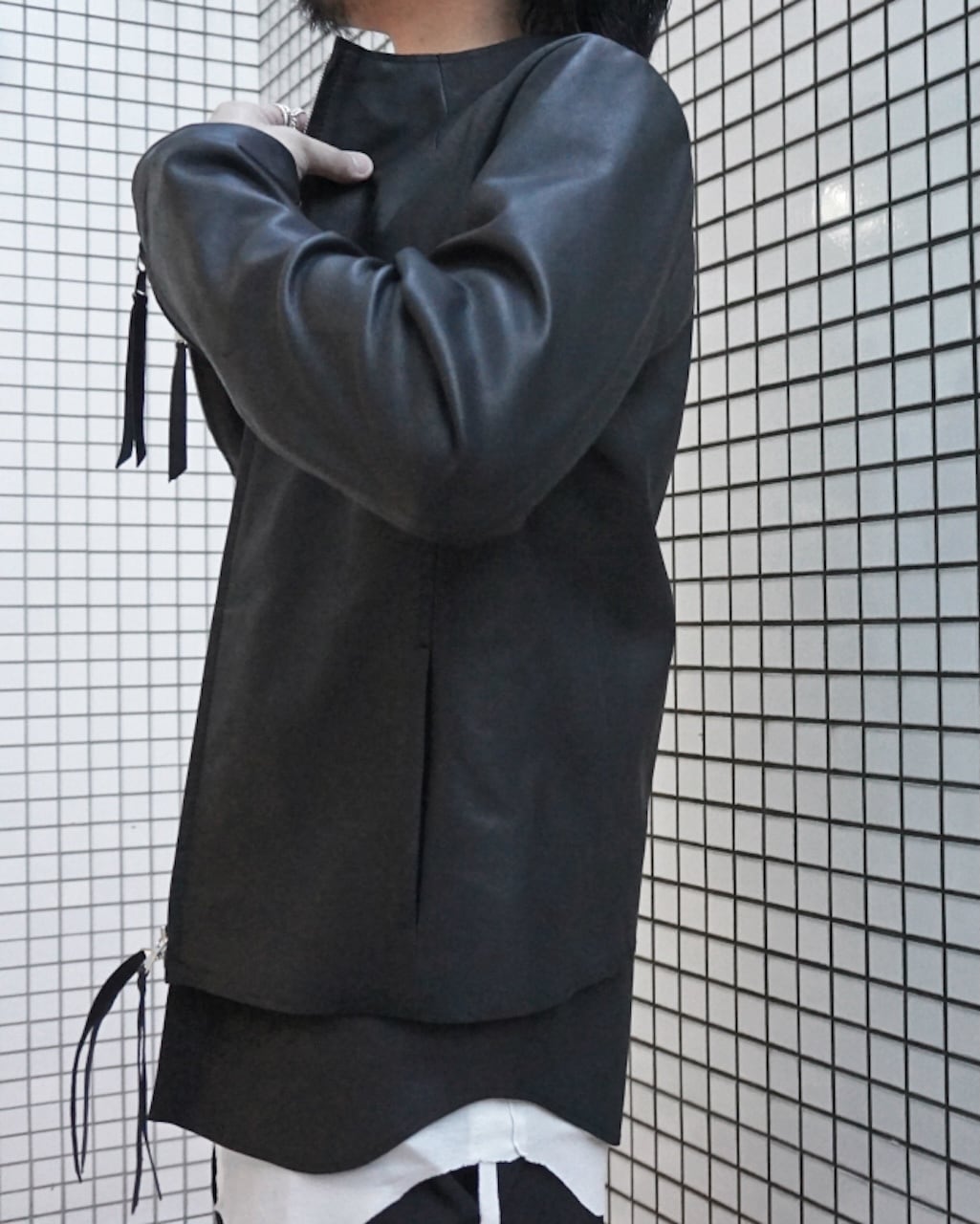 The signature model from the very beginning of ASKYY, the SINGLE LEATHER (REMOVABLE RIDER), makes its return.For the first time in four years, the timeless black is reintroduced. While stripped down to the utmost minimalism, it embodies ASKYY’s distinctive layered gimmick, setting it apart from any other leather piece. The hem is equipped with a hidden inner zipper, allowing it to be worn in two ways—flat or with a rounded curve. At first glance it may seem simple, yet it carries the essence of ASKYY’s philosophy, a true masterpiece to be cherished and cultivated over time.