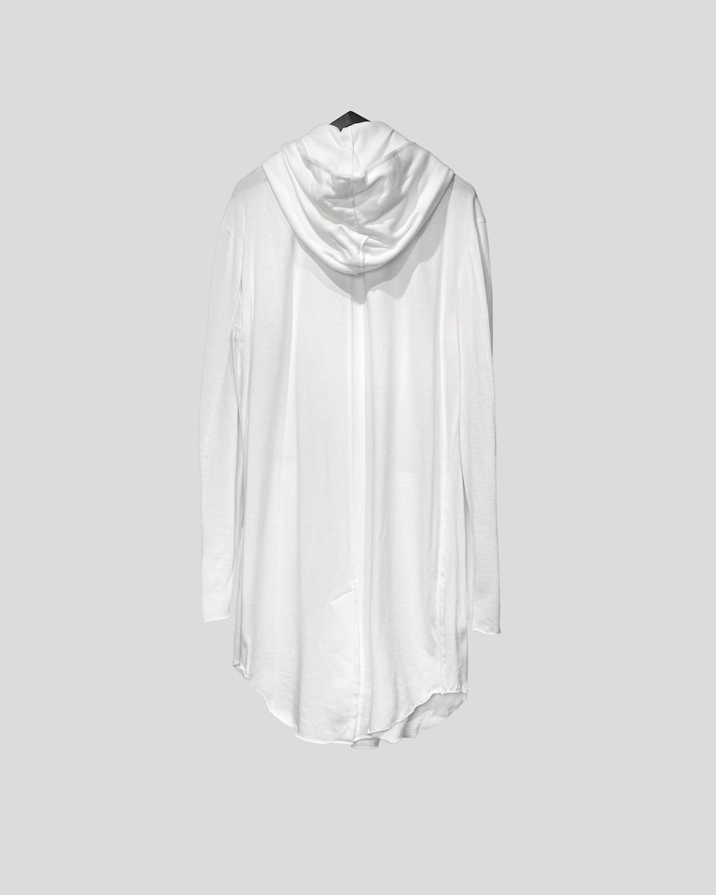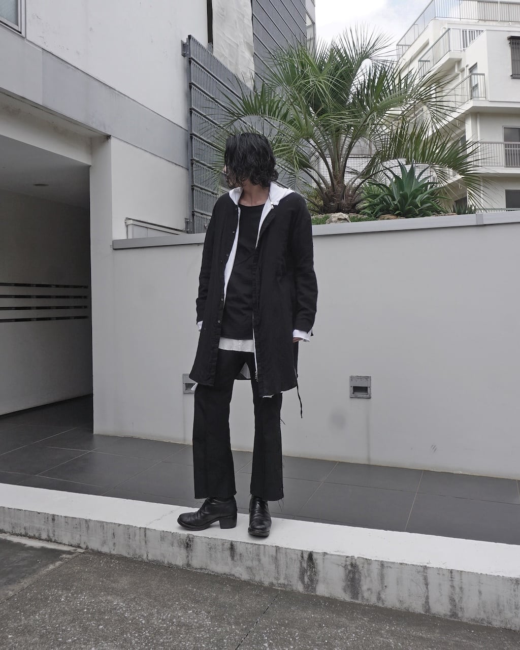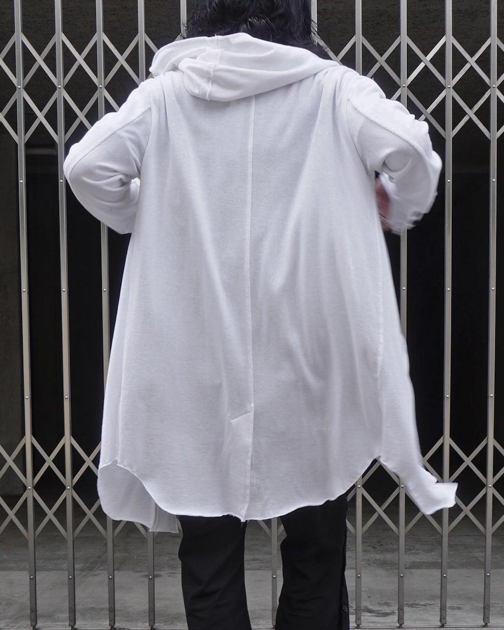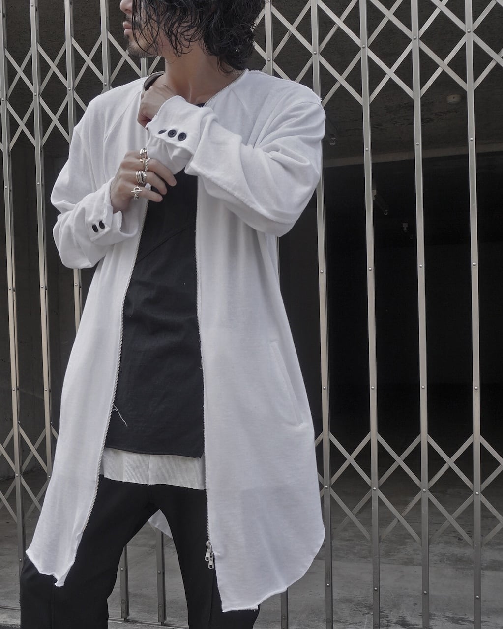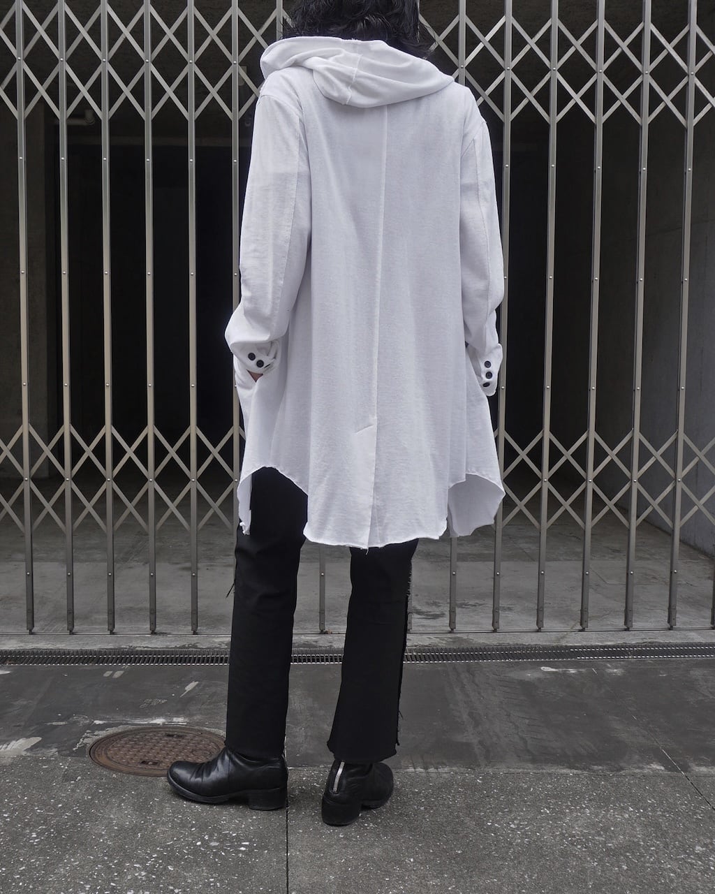 25SSの完全受注限定生産アイテムから新色のホワイトが誕生。首周りにぐるり一周仕込んであるジップで、フードを取り外すことが出来るロングパーカー。2WAYの利便性があり、レイヤードが重要となってくる秋冬期にこそ当アイテムの機能と色の選択が発揮される。