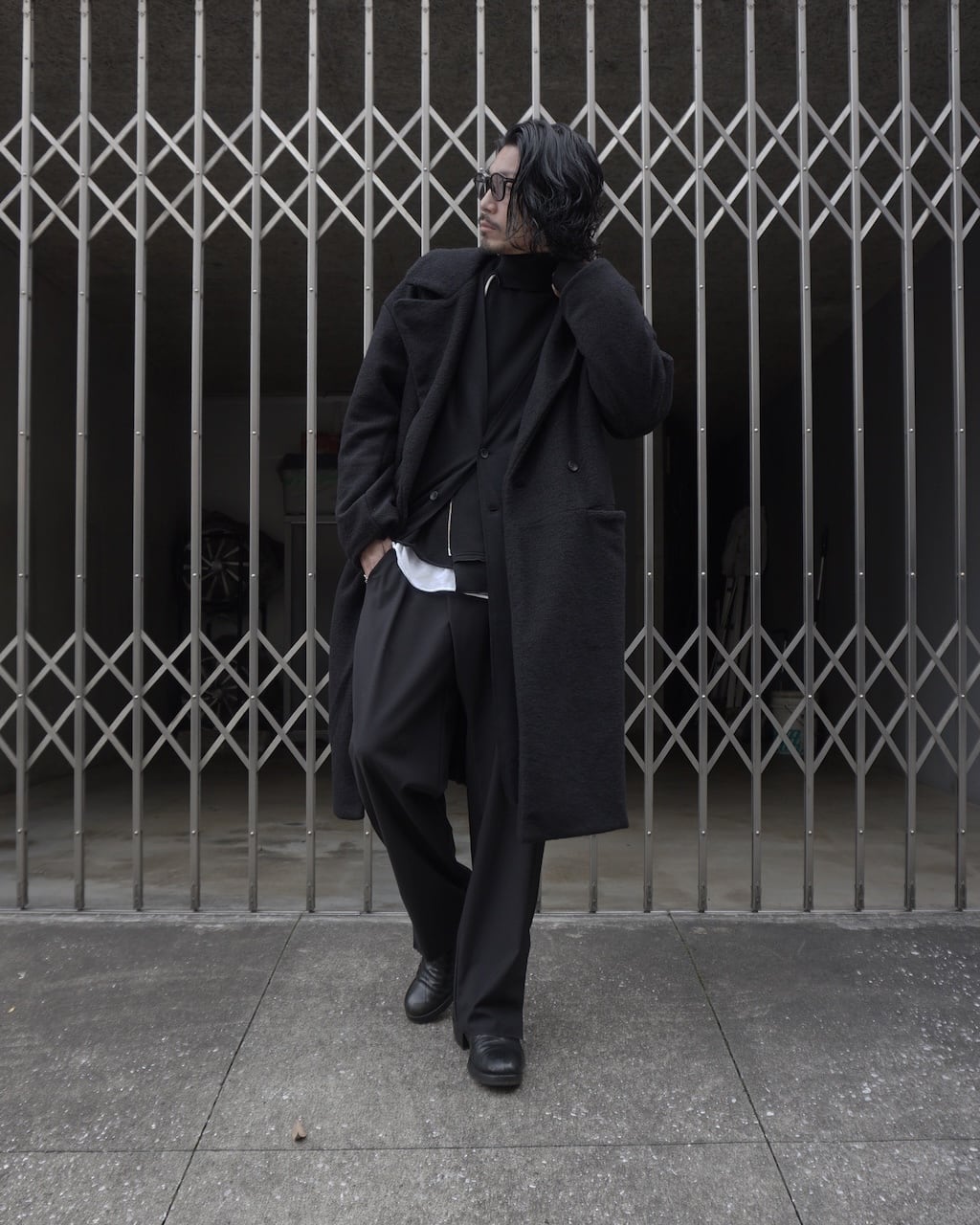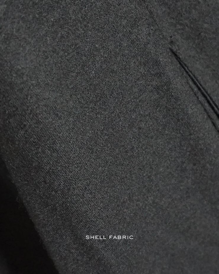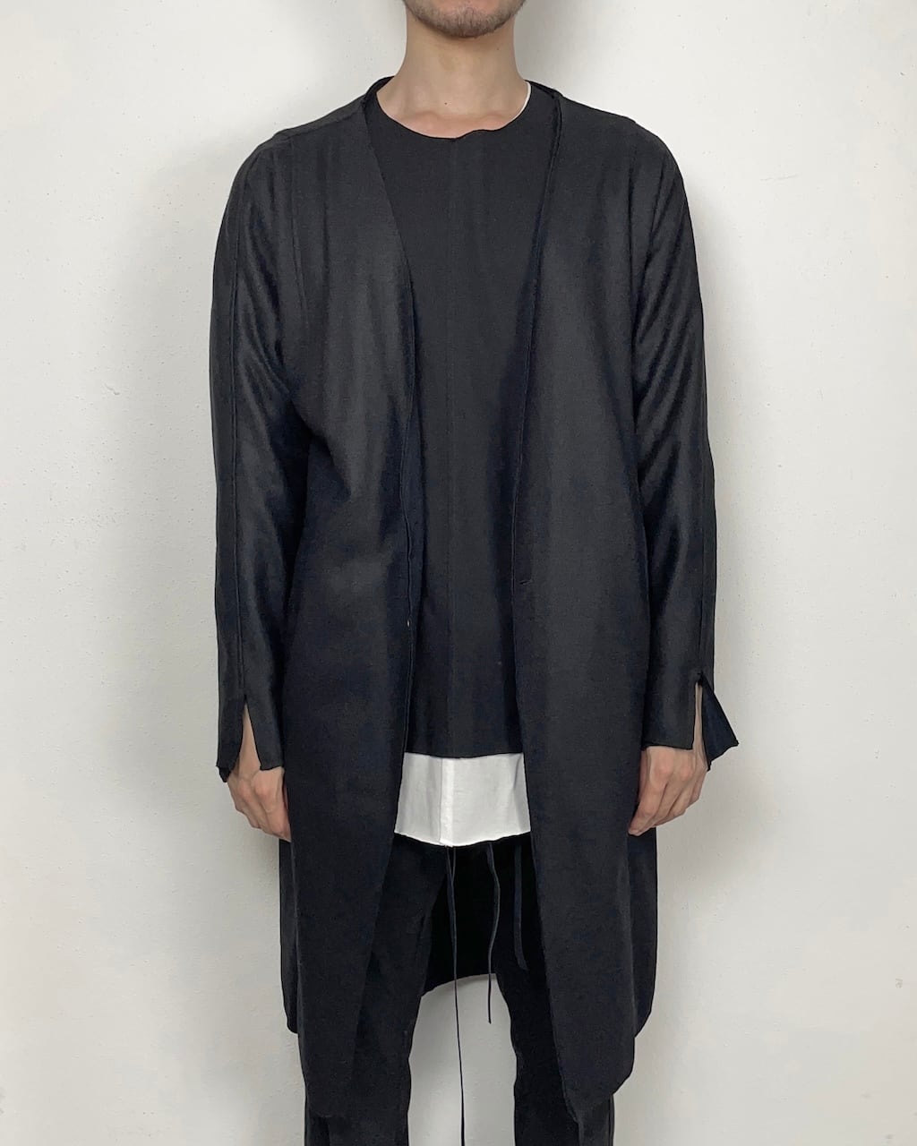 Positioned between a coat and a cardigan, this “coatigan” introduces a long-length cardigan silhouette—our first release in quite some time. Its calm, understated impression is highly minimal, projecting a refined and elegant presence. The outer and inner fabrics are bonded to improve thermal insulation, allowing it to be worn casually as a daily outer layer without the formality of a coat.