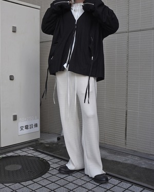 Easy slacks featuring a moderately flared silhouette. Designed for those moments when you want to unwind even more than usual with ASKYY—relaxing, effortless, and calm. As the name suggests, they offer the kind of composed comfort you’d feel in a hotel or airport lounge.