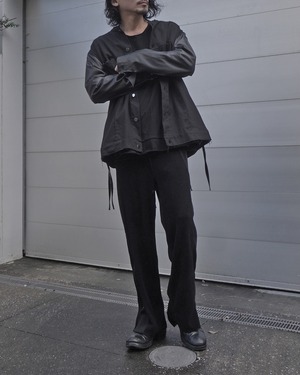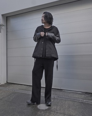 ほどよいフレアシルエットで仕立てたイージースラックス。いつものASKYYよりもさらに肩の力を抜いて過ごしたいときに選んで頂きたい一本。名の通り、ホテルや空港のラウンジで寛ぐような、余白のある時間をご提供。