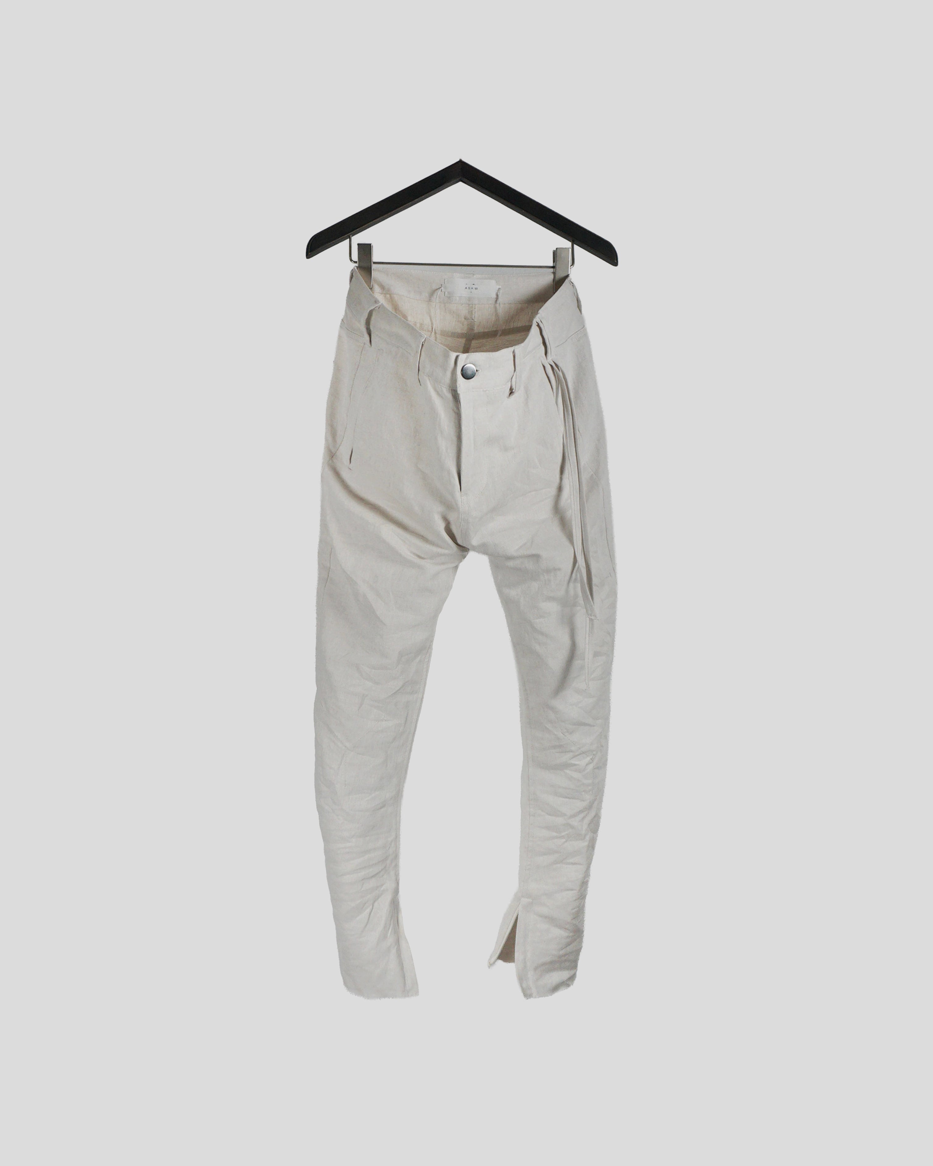 ASKYYで長くご愛用頂いている定番「Y DENIM LIGHT」の盛夏用を初リリース。品の良さ、質の良さが際立つフレンチリネンを用いて、軽さ・涼しさを追求した。リネン素材のため、デニムとは異なる経年変化が見込め、深みのある皺を形成していく。
