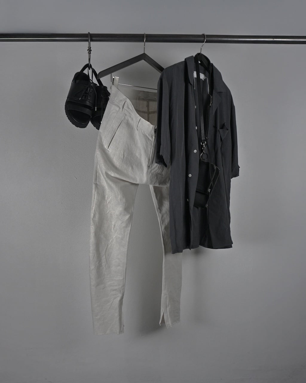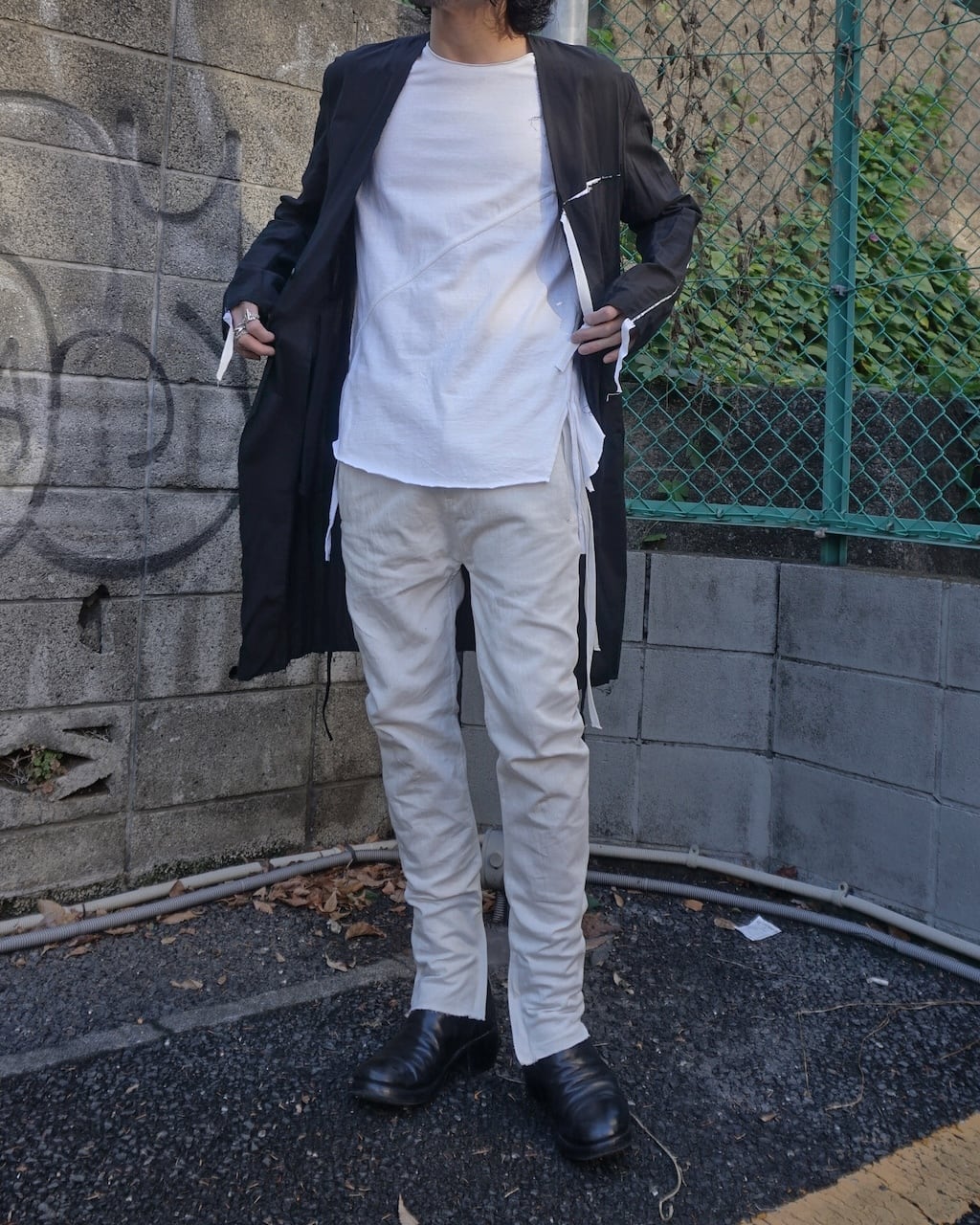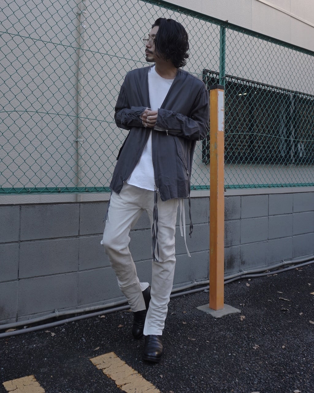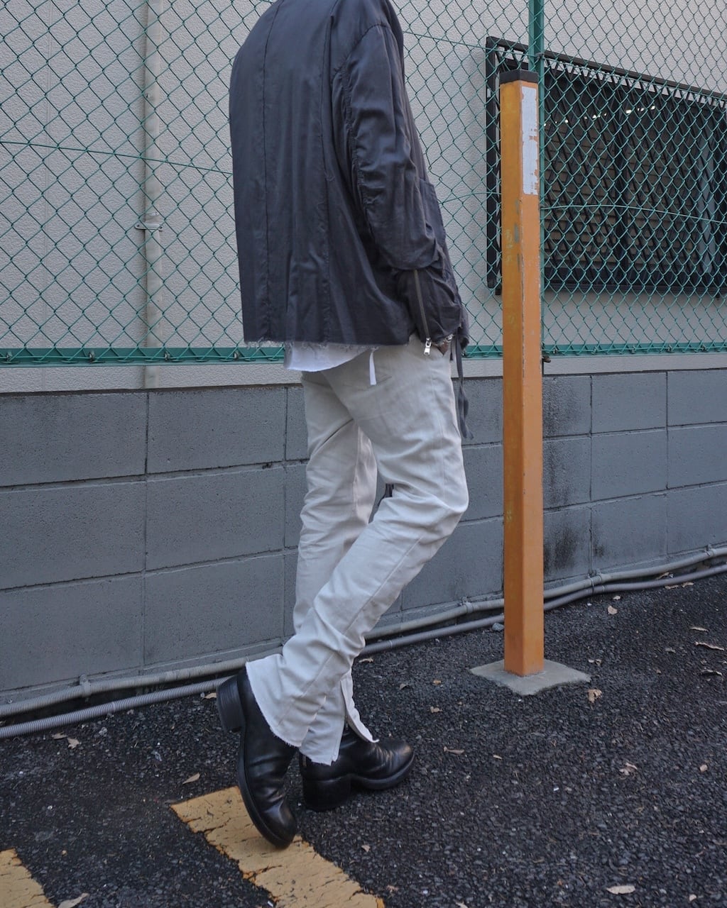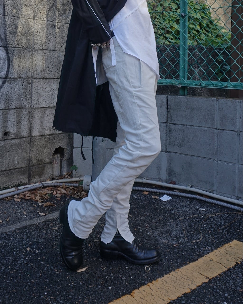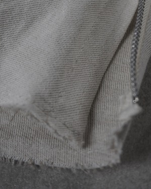 夏場のリネンシャツや、くたっとしたカットソーに大変相性がよいテクスチャーで、夏の装いを際立たせる一品。シルエットや細部の作りは変わらず、内側に湾曲させた立体シルエットでやや深めに設定された股上もY DENIMならではの特徴。膝にはさりげないYのステッチがあり、裾のジップで靴とのつながりを綺麗に見せる。