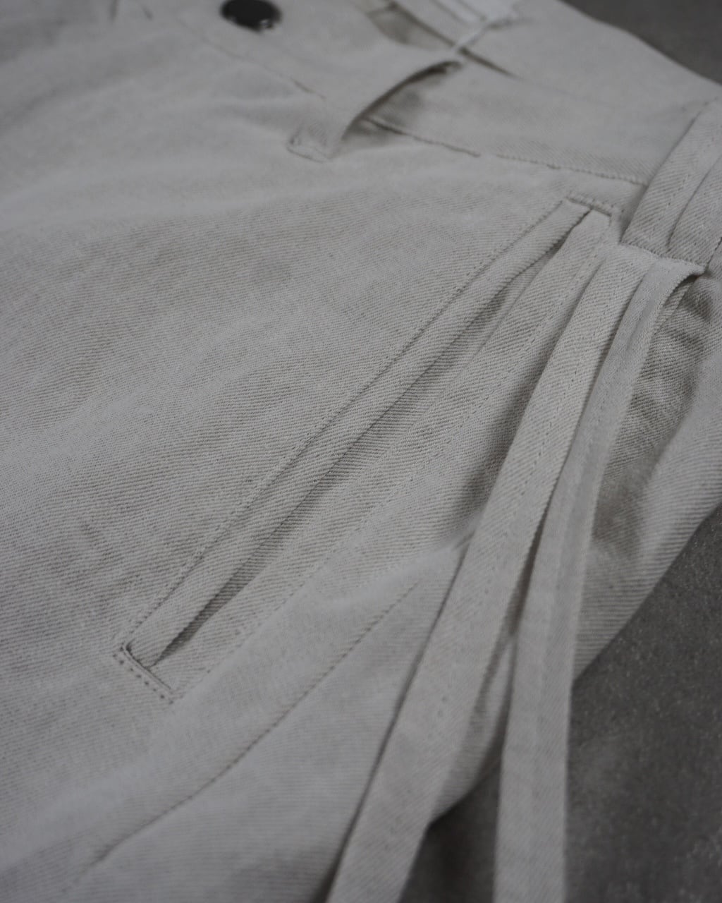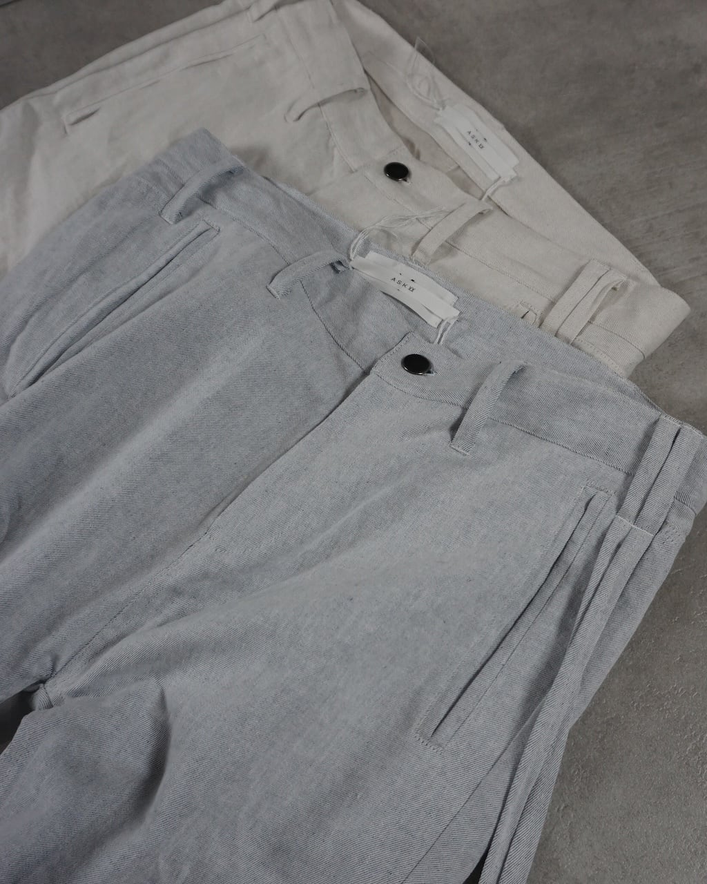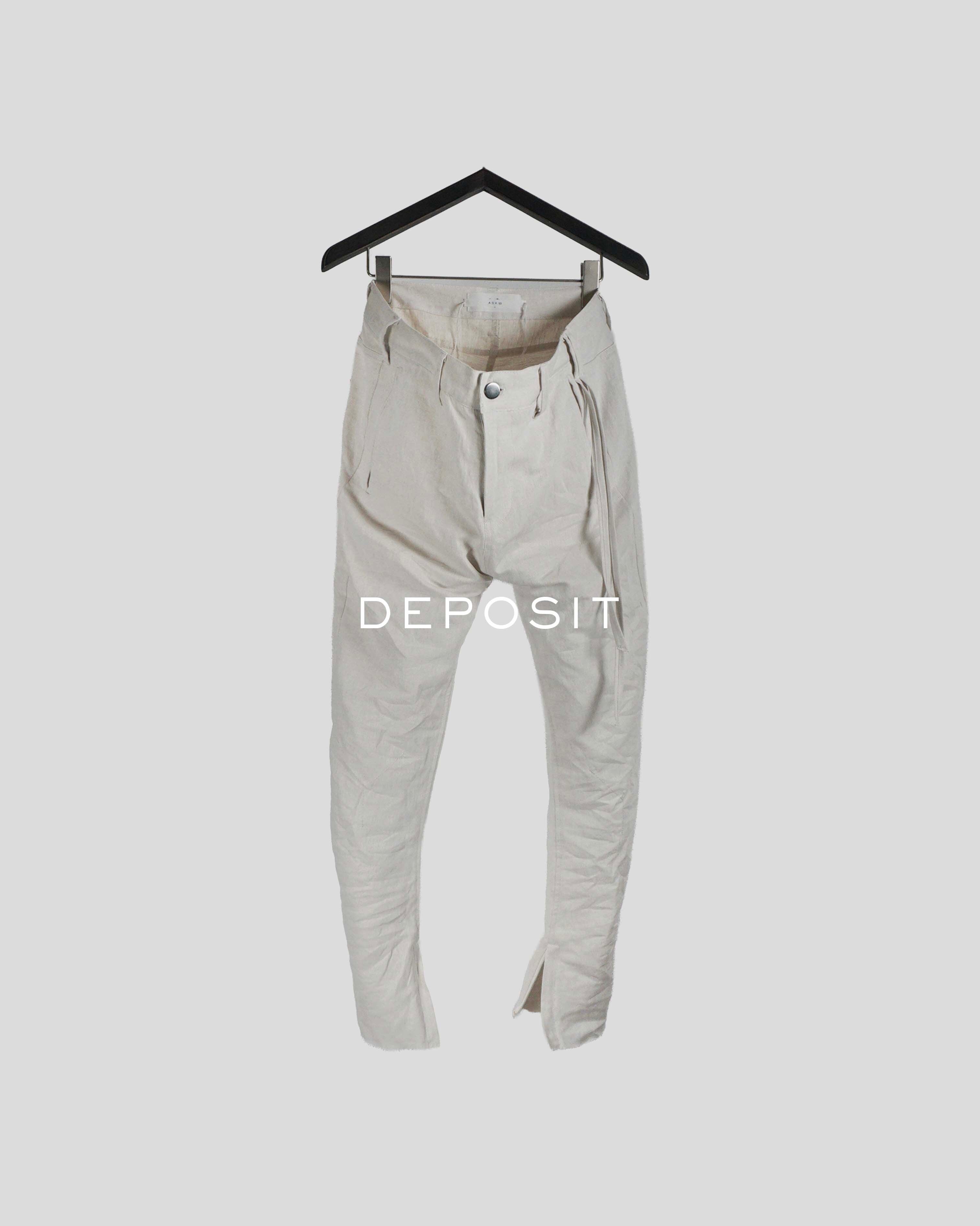 ASKYYで長くご愛用頂いている定番「Y DENIM LIGHT」の盛夏用を初リリース。品の良さ、質の良さが際立つフレンチリネンを用いて、軽さ・涼しさを追求した。リネン素材のため、デニムとは異なる経年変化が見込め、深みのある皺を形成していく。