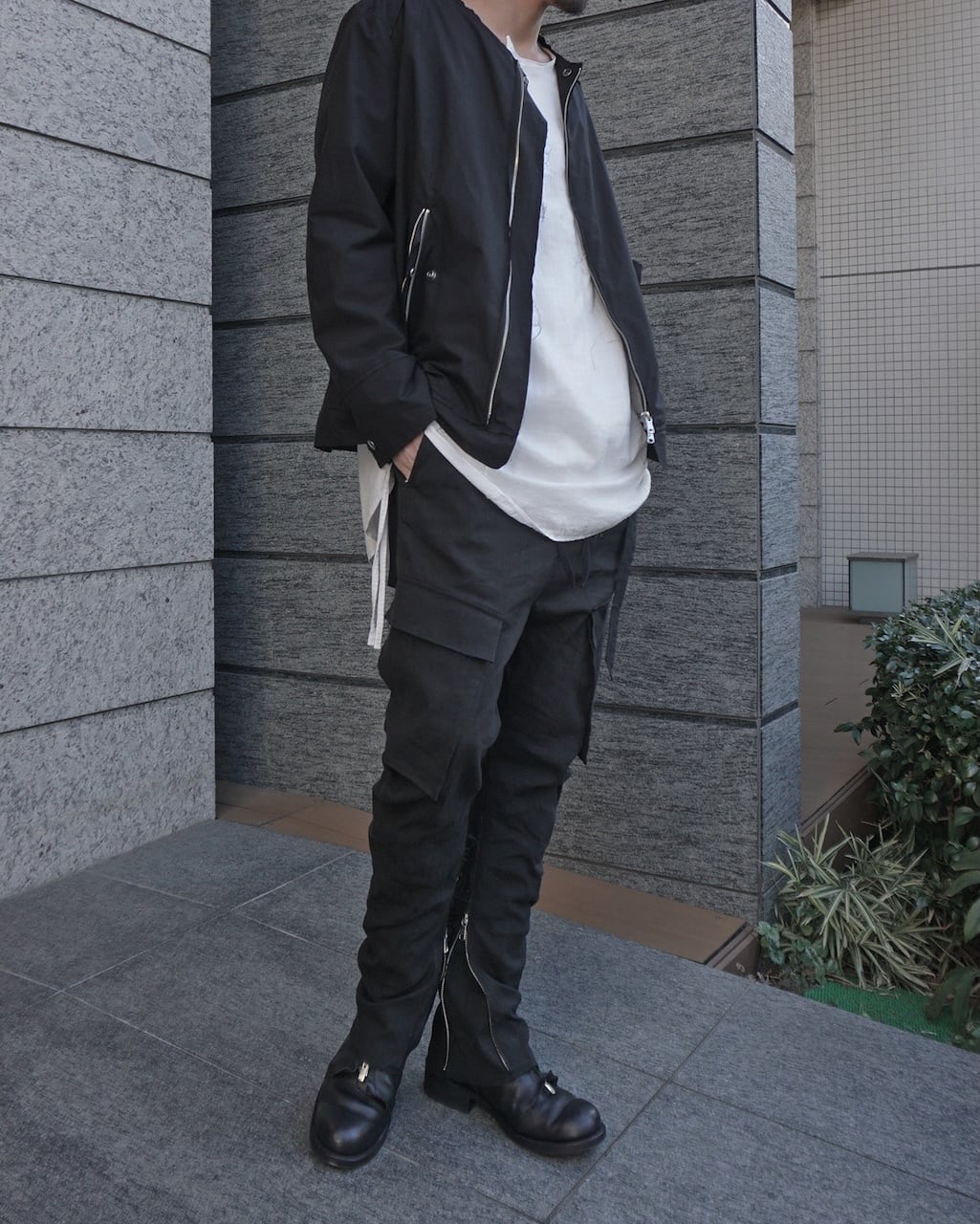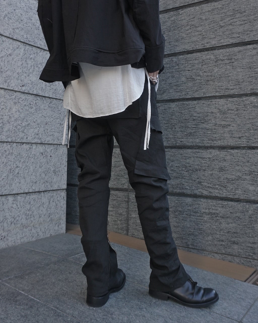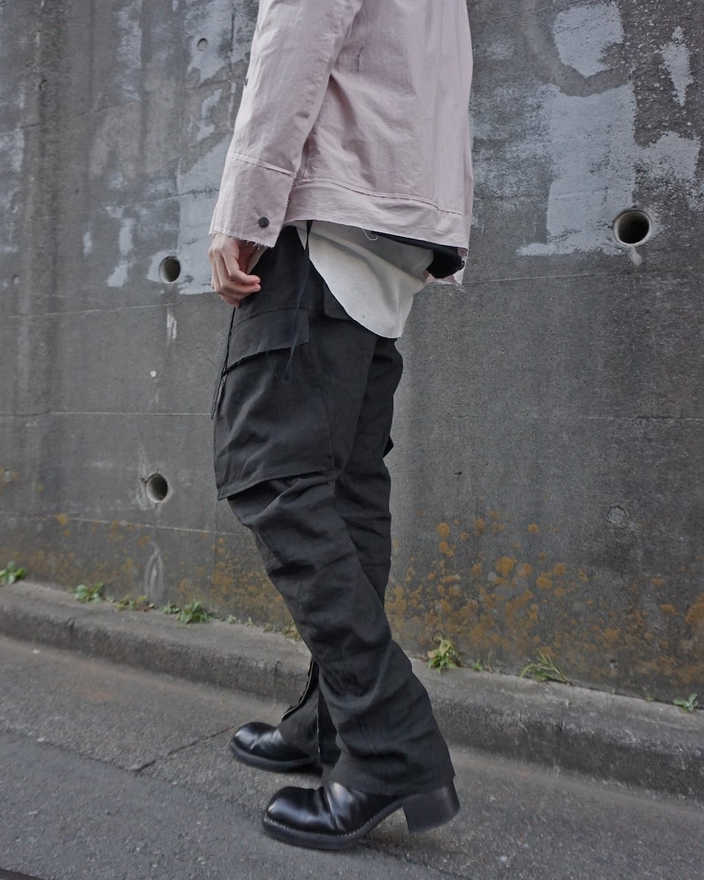 裾には長いジップを備えており、フレアシルエットにも変形可能。左ポケットにはアイコンのストラップを装着。右ポケットのフラップにはY刺繍がさりげなく入る。普遍的なカーゴパンツながらも細部や色味、素材にこだわることで差別化を図っている。