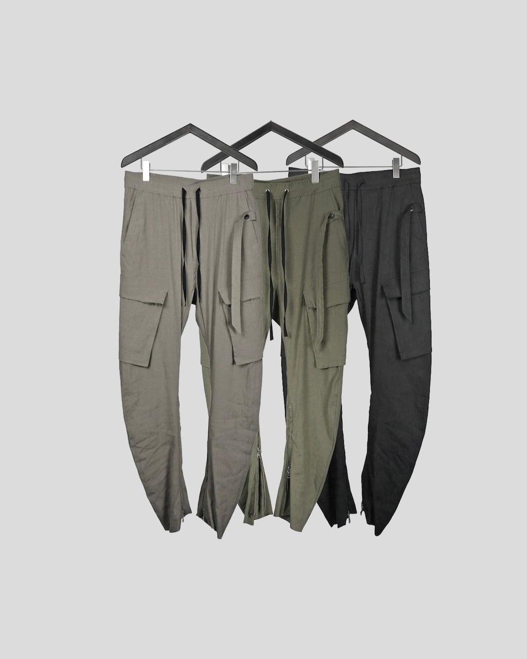 • ご予約限定品 / FLARED LINEN CARGO PANTS / GREYSH KHA