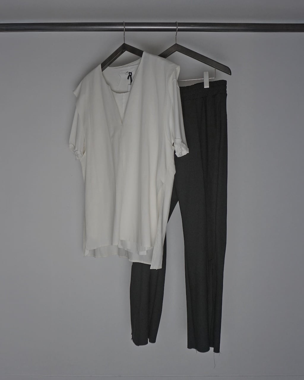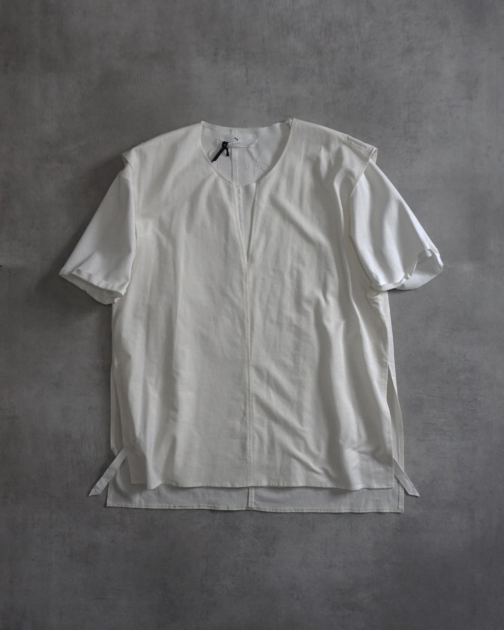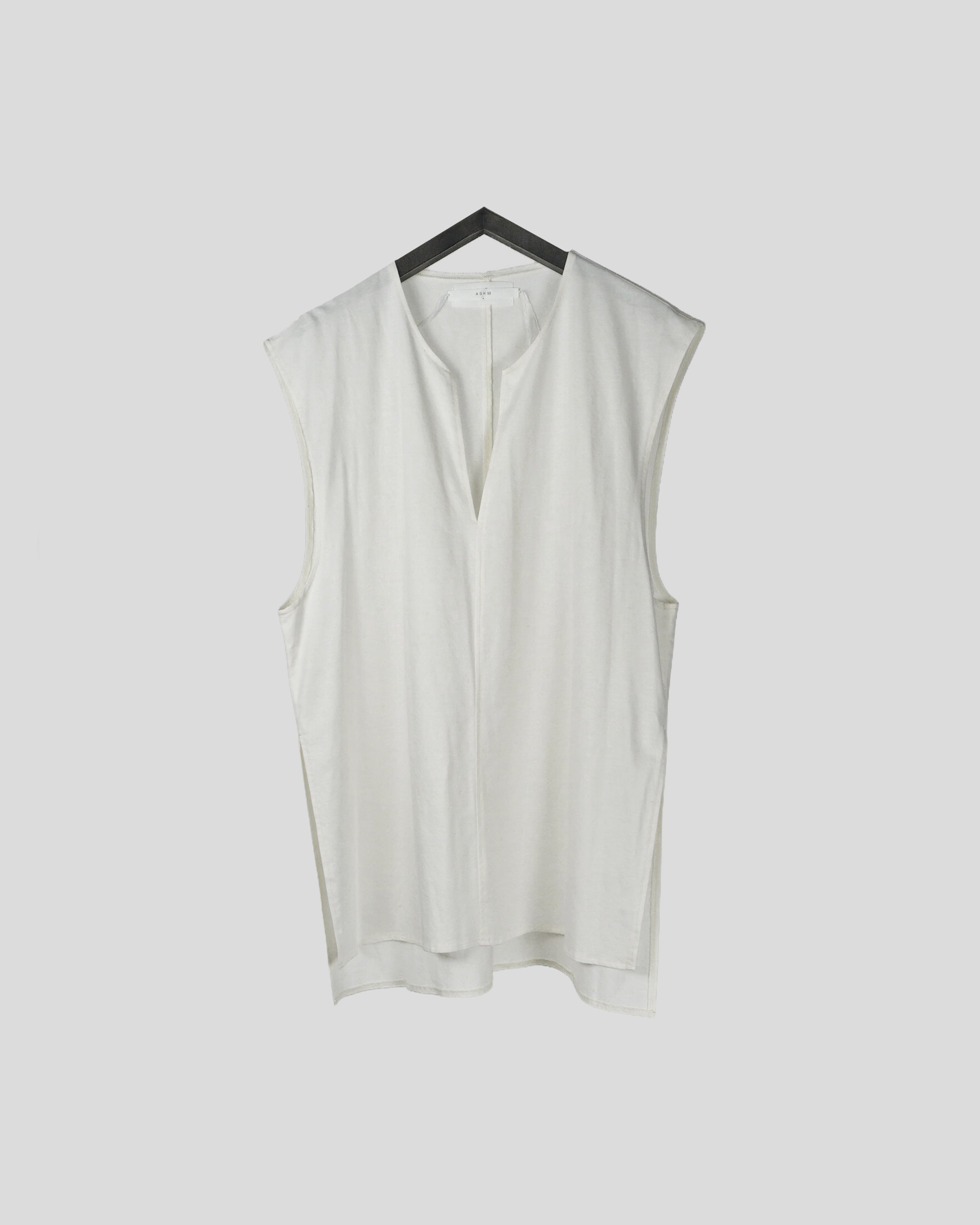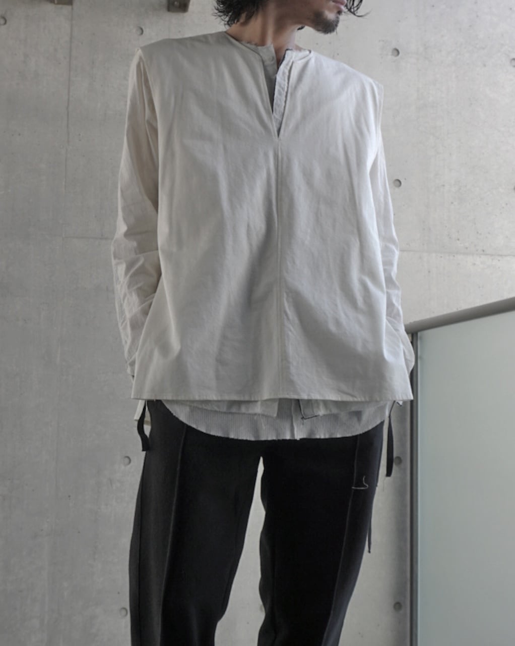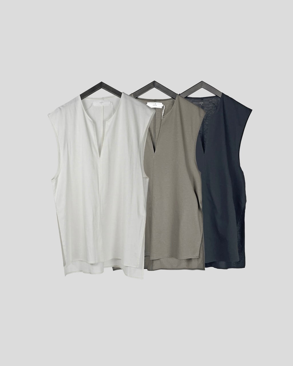 レイヤーに適したガジェットである『スリットベスト』のコットンリネン素材版を再リリース。真夏のスタイリングを容易に味付けできる利便性があり、素材も涼しげでストレスを感じにくい。前後の着丈を変えており、側面の深いスリットもアクセント。カットソーやTシャツ1枚で終わらせず、コーディネートの奥行きを拡張する。