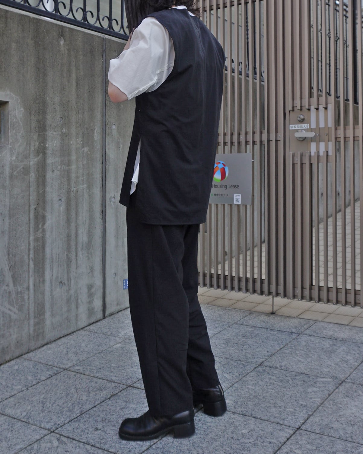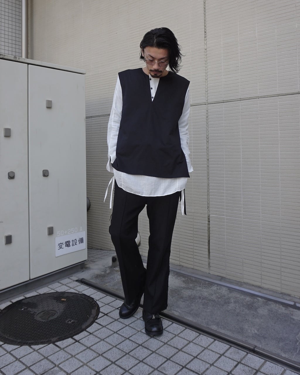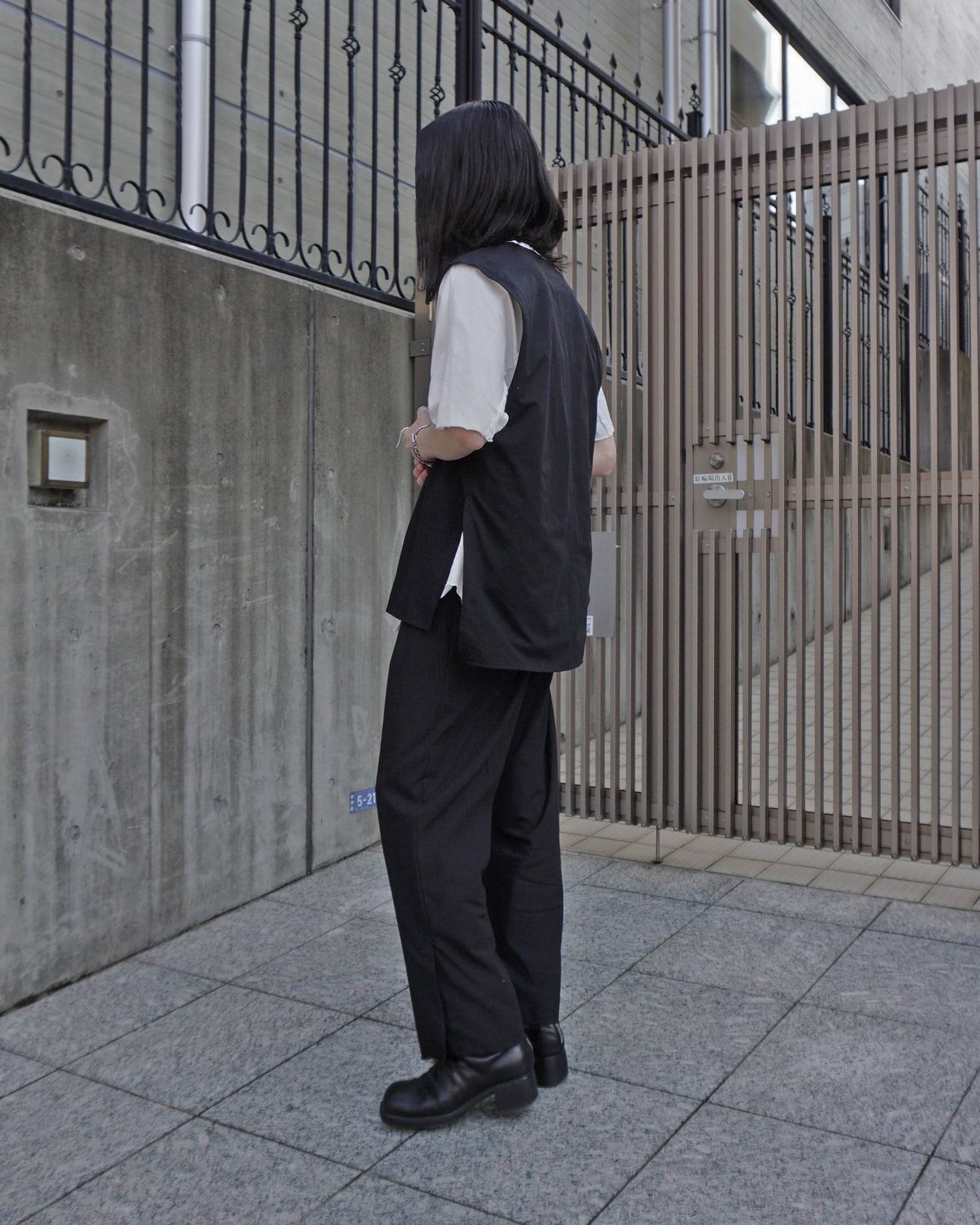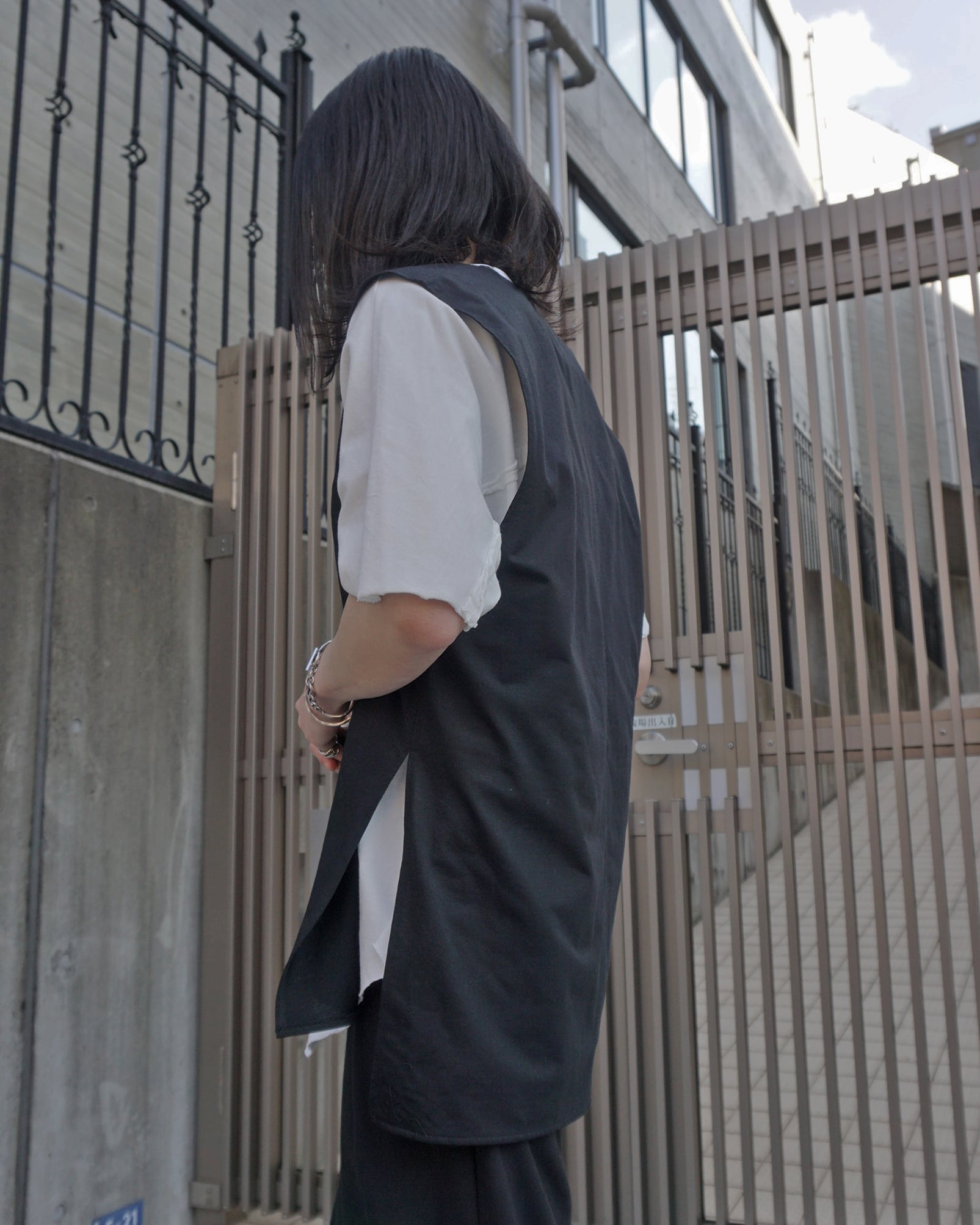 レイヤーに適したガジェットである『スリットベスト』のコットンリネン素材版を再リリース。真夏のスタイリングを容易に味付けできる利便性があり、素材も涼しげでストレスを感じにくい。前後の着丈を変えており、側面の深いスリットもアクセント。カットソーやTシャツ1枚で終わらせず、コーディネートの奥行きを拡張する。
