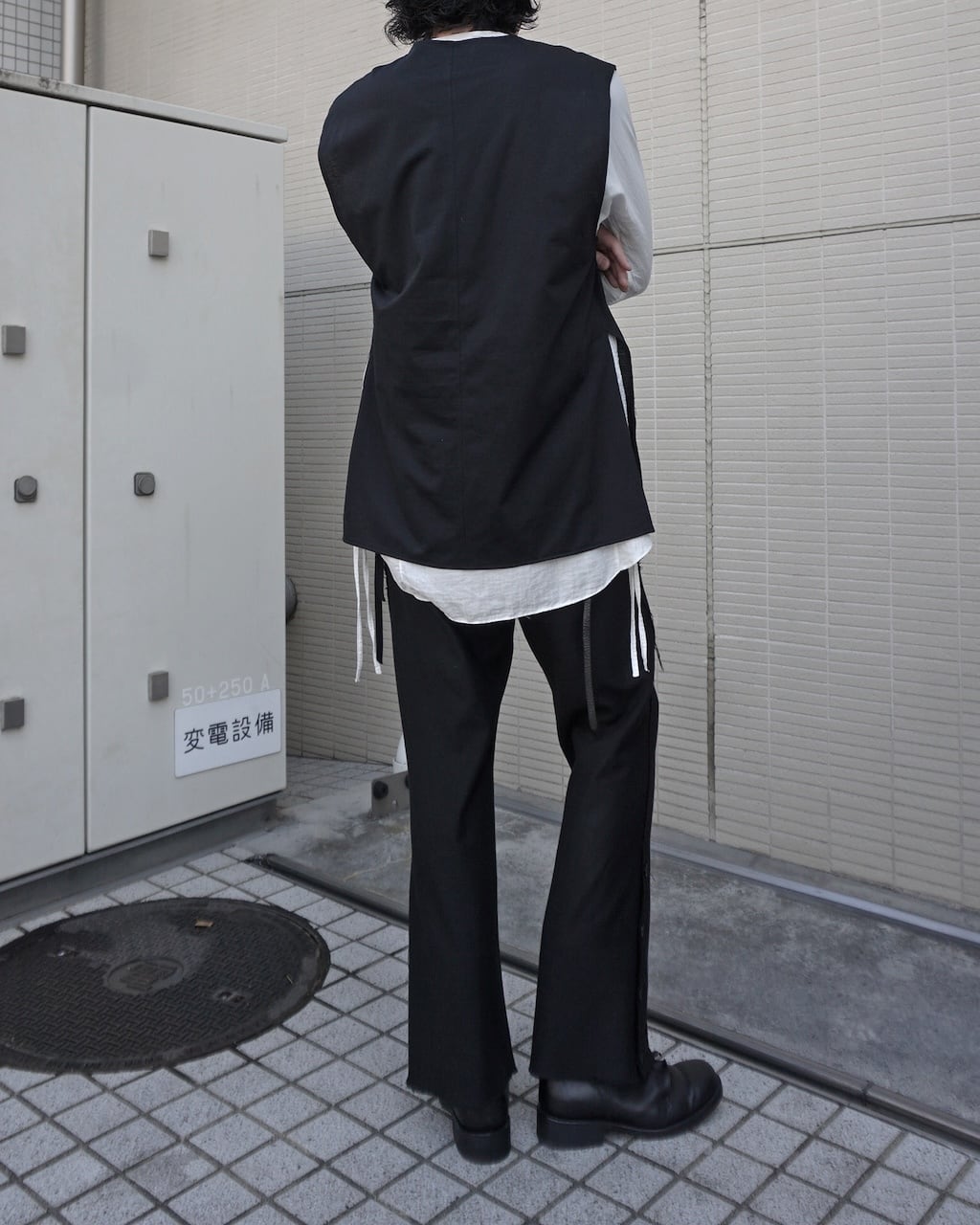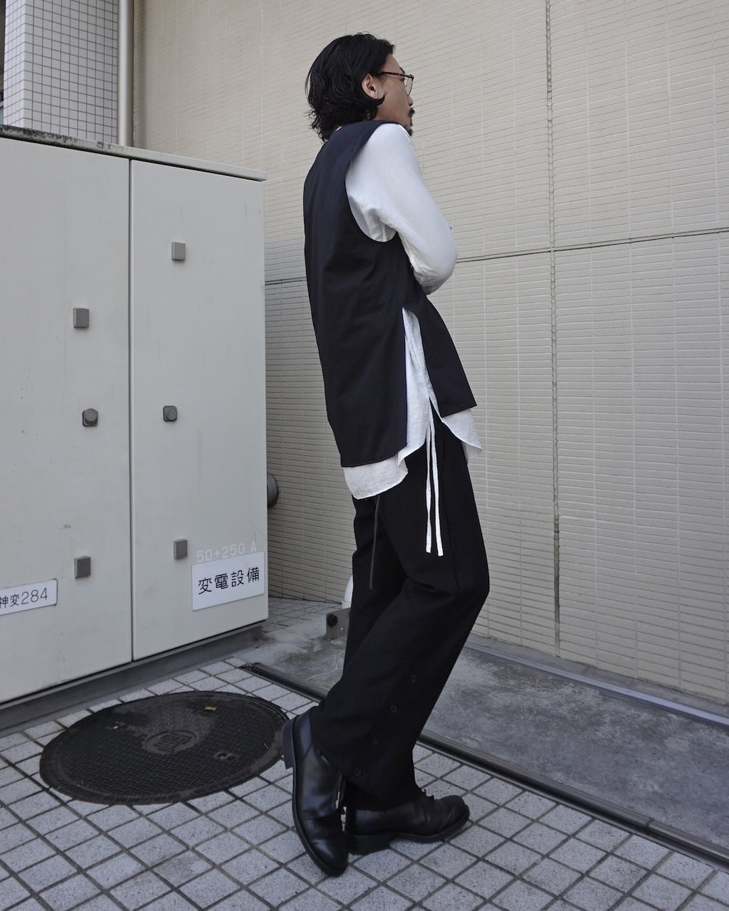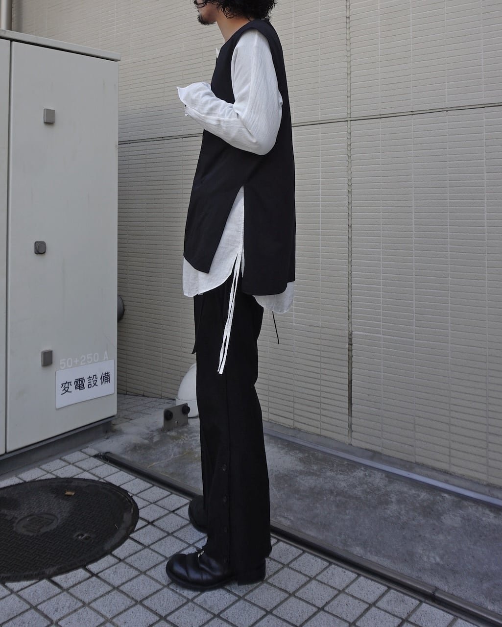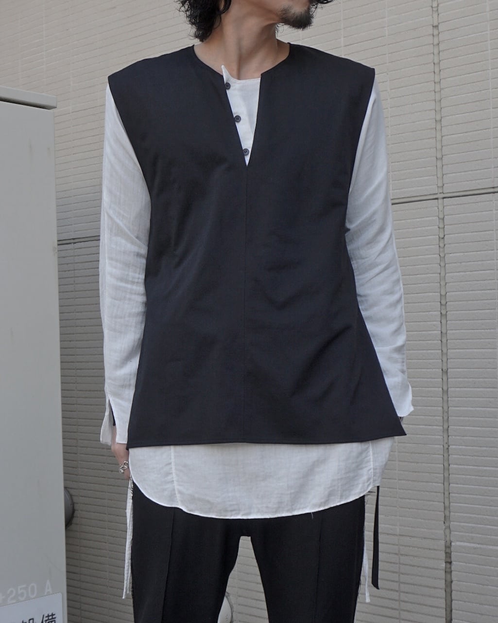 レイヤーに適したガジェットである『スリットベスト』のコットンリネン素材版を再リリース。真夏のスタイリングを容易に味付けできる利便性があり、素材も涼しげでストレスを感じにくい。前後の着丈を変えており、側面の深いスリットもアクセント。カットソーやTシャツ1枚で終わらせず、コーディネートの奥行きを拡張する。