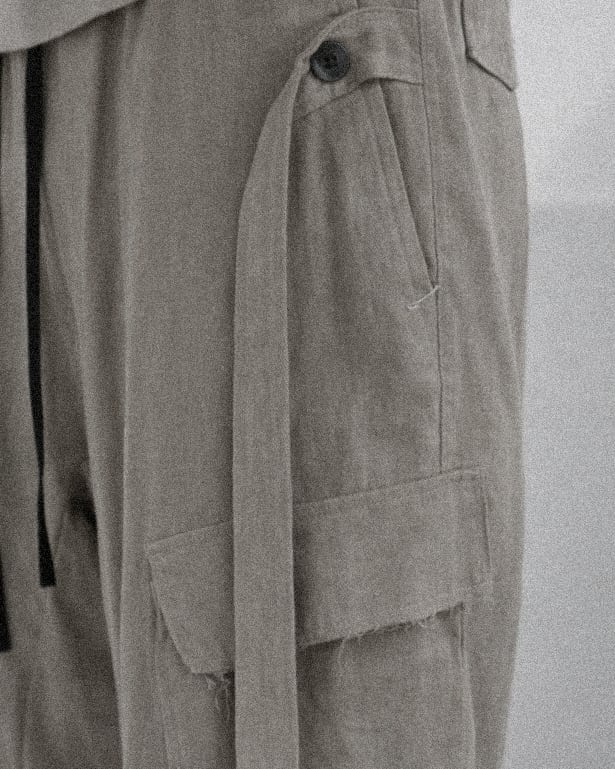 [FLARED LINEN CARGO PANTS]