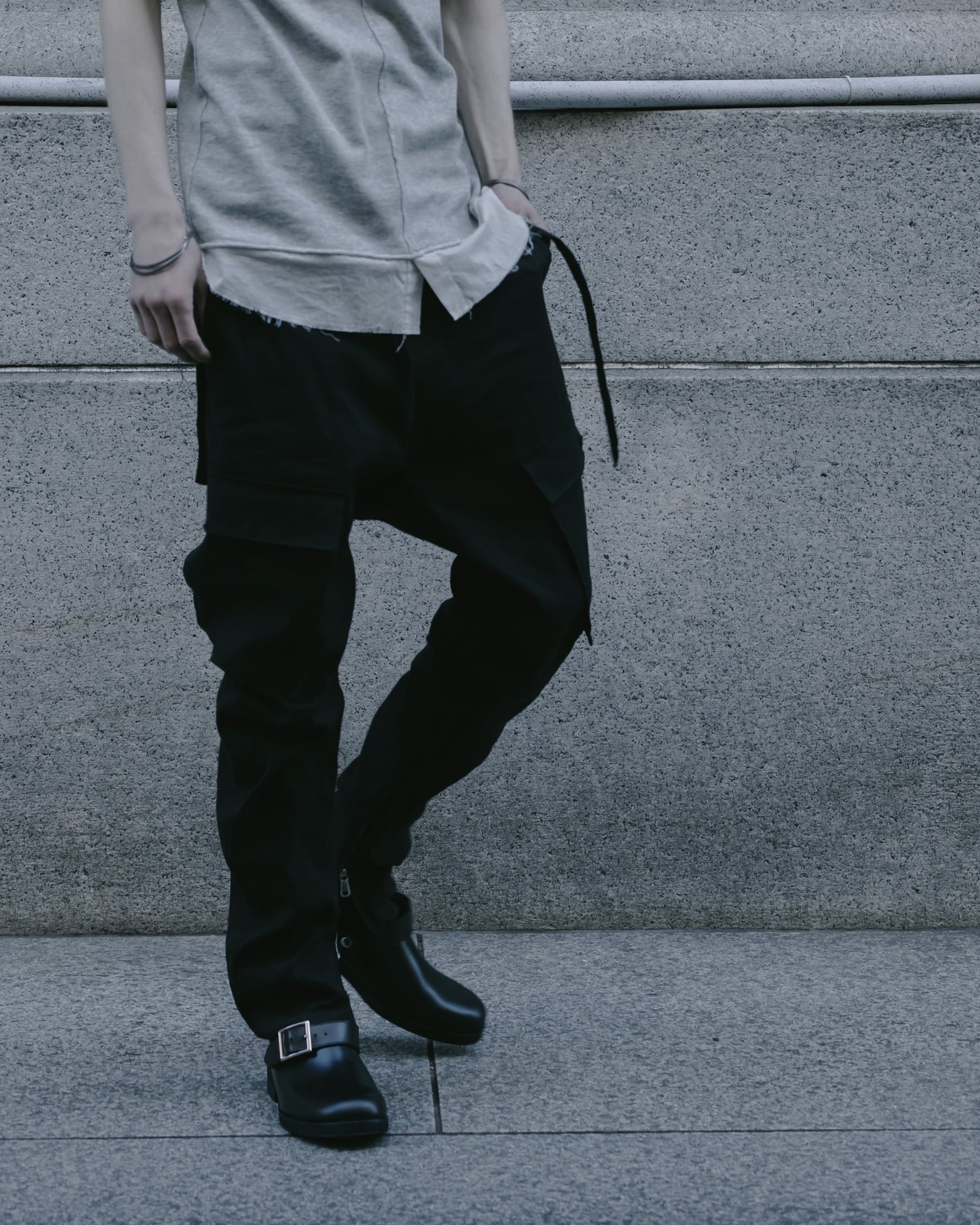 A long zipper is set at the hem, allowing the silhouette to transform into a subtle flare. The brand’s signature strap is attached to the left pocket, while a discreet Y embroidery accents the flap of the right pocket. Though rooted in the universal language of cargo pants, this piece differentiates itself through considered details, nuanced color tones, and carefully selected materials.