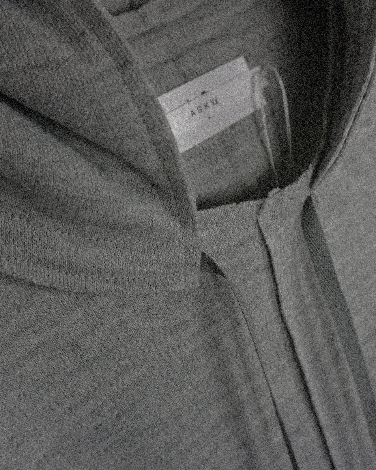 A pullover-style hoodie distinguished by a design that adds and docks a hood onto a crew-neck base.This marks ASKYY’s first hoodie crafted from a knit fabric, achieving an elegant style that also suits formal contexts.