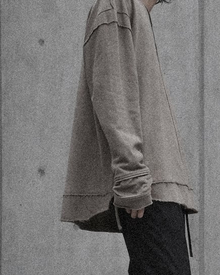 Thinner than a sweatshirt yet thicker than a regular long-sleeve tee, the fabric strikes the ideal balance for comfort and temperature regulation. It’s opaque enough to be worn on its own without concern for transparency, while providing a dependable warmth. The material offers excellent stretch for easy wearability, and the short-pile reverse side delivers a gentle softness even when worn directly on bare skin.