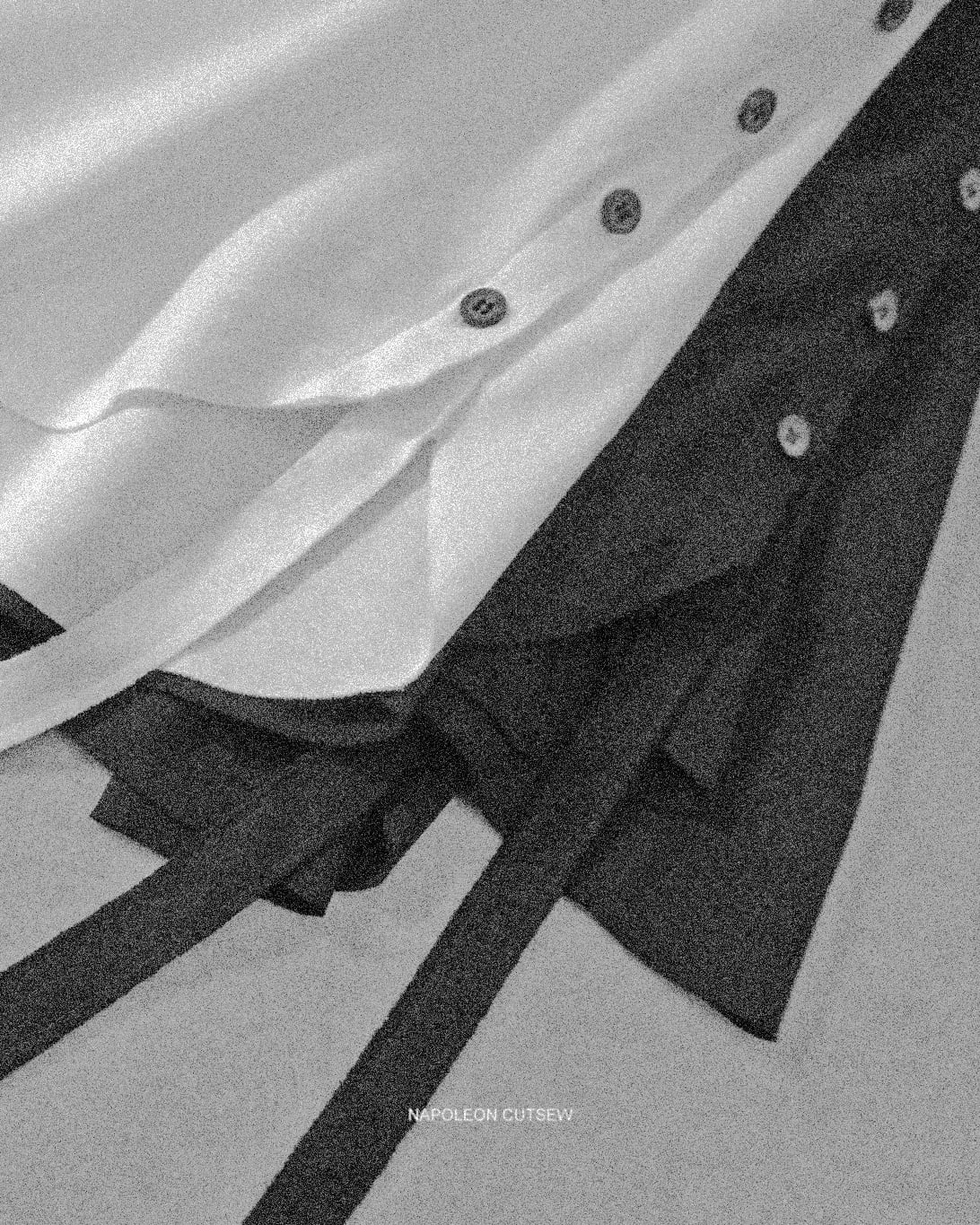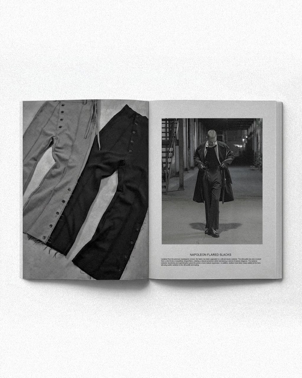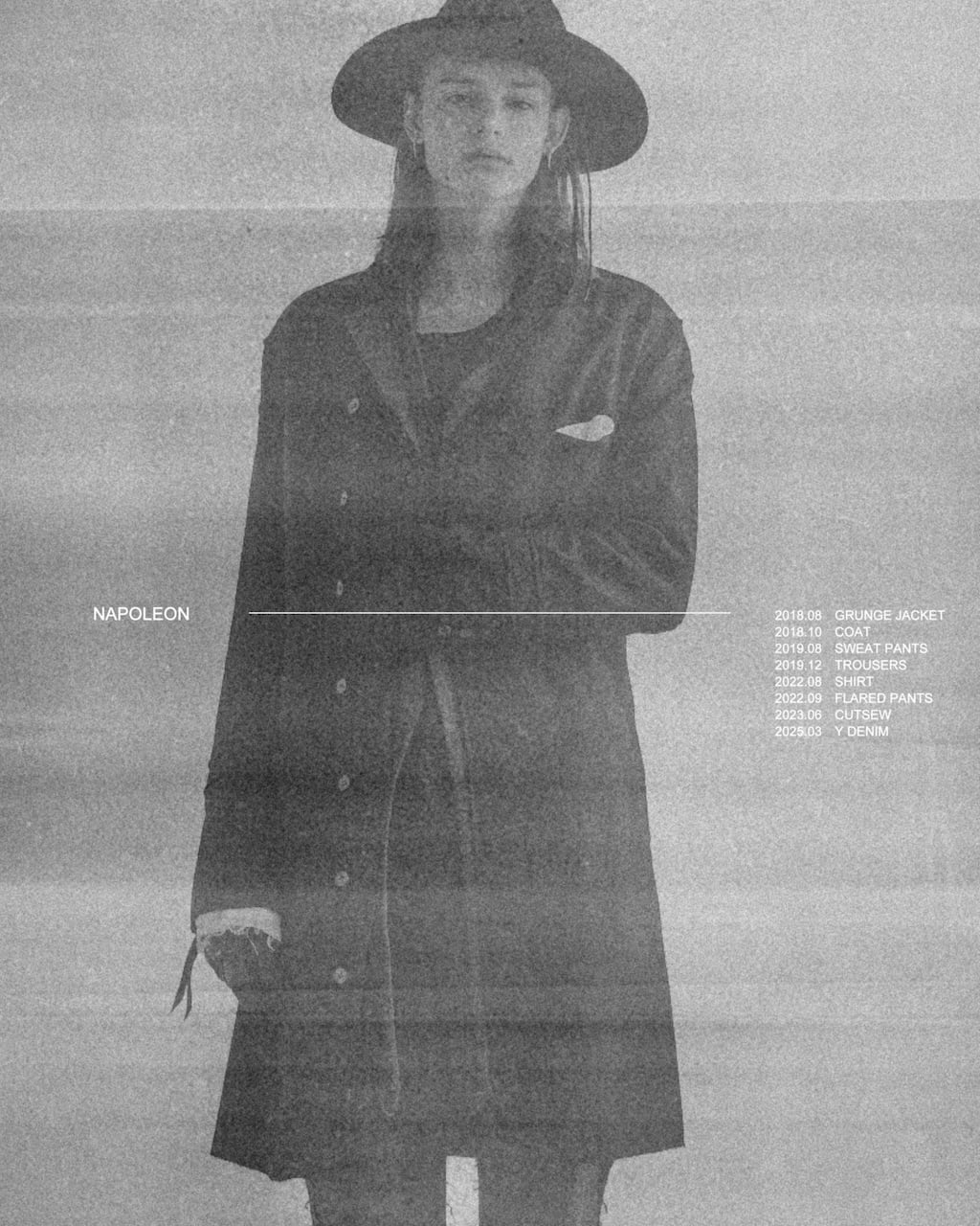 ASKYY's "Napoleon Series" is a line that symbolizes the brand's identity, featuring a minimal and modern design that overturns the conventional image of highly decorative military uniforms. The orderly rows of buttons are its signature, imbuing the pieces with a strong sense of classicism.
