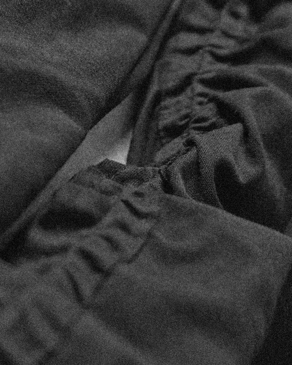 A relaxed jacket made from a refreshing, thin cotton linen material. The buttons and zipper on the front allow for adjustments in how it is worn. Gathers are placed on the inside of the sleeves to add a loose nuance. The outside of the sleeves are also accentuated by leaving the seam allowance on the outside. The cord at the hem can be removed with the button on the inside. There is a waist pocket.