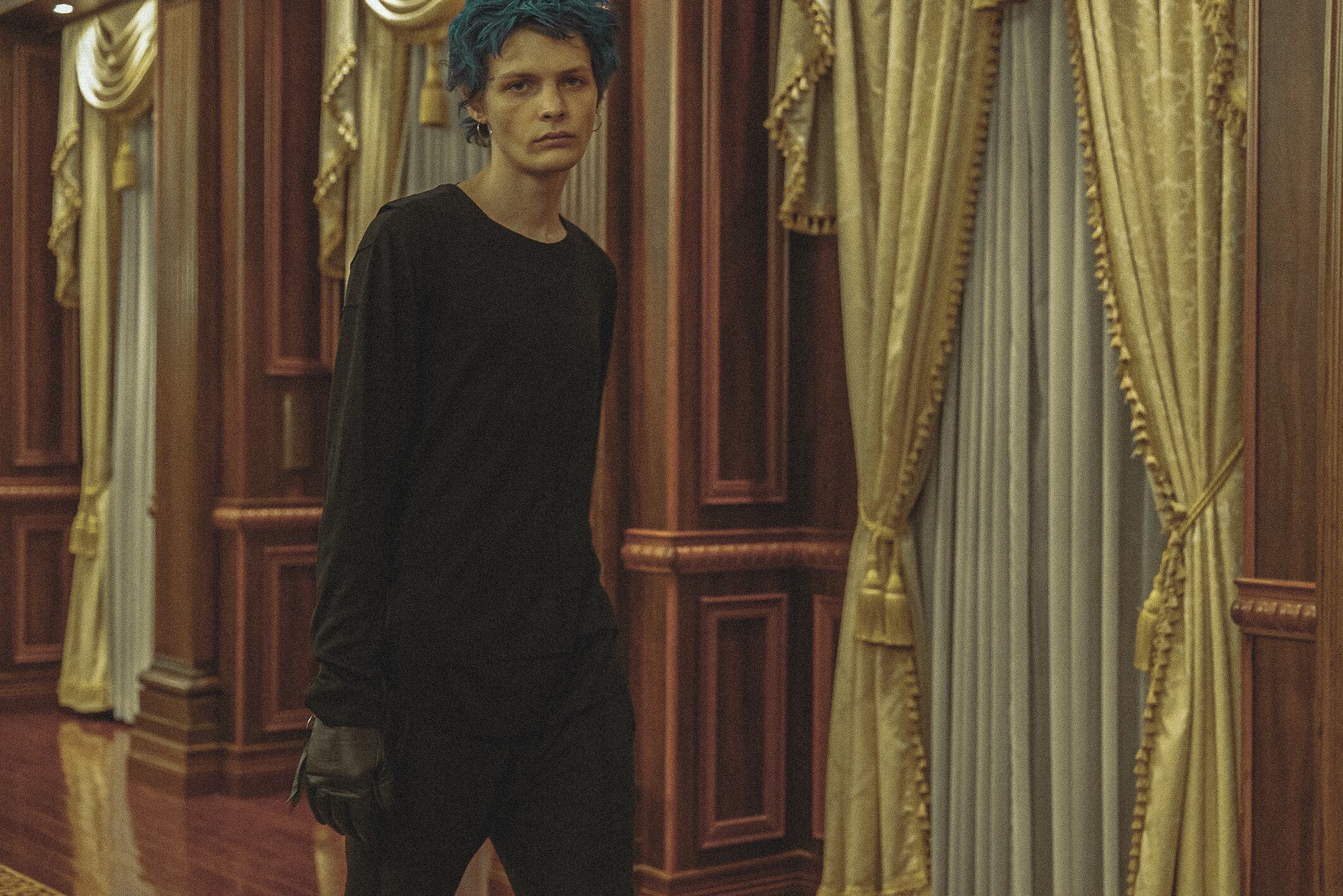 首元は詰まりがなく、リラックスしたニュアンス。ベストはニットベスト単体としても使いやすいようシンプルでミニマルな作りに対し、本体の長袖部分は肩線を2つ設けるASKYY定番のデザインをプラス。デザイン性、利便性、防寒性、価格など総合的にバランスのとれた作品が完成した。