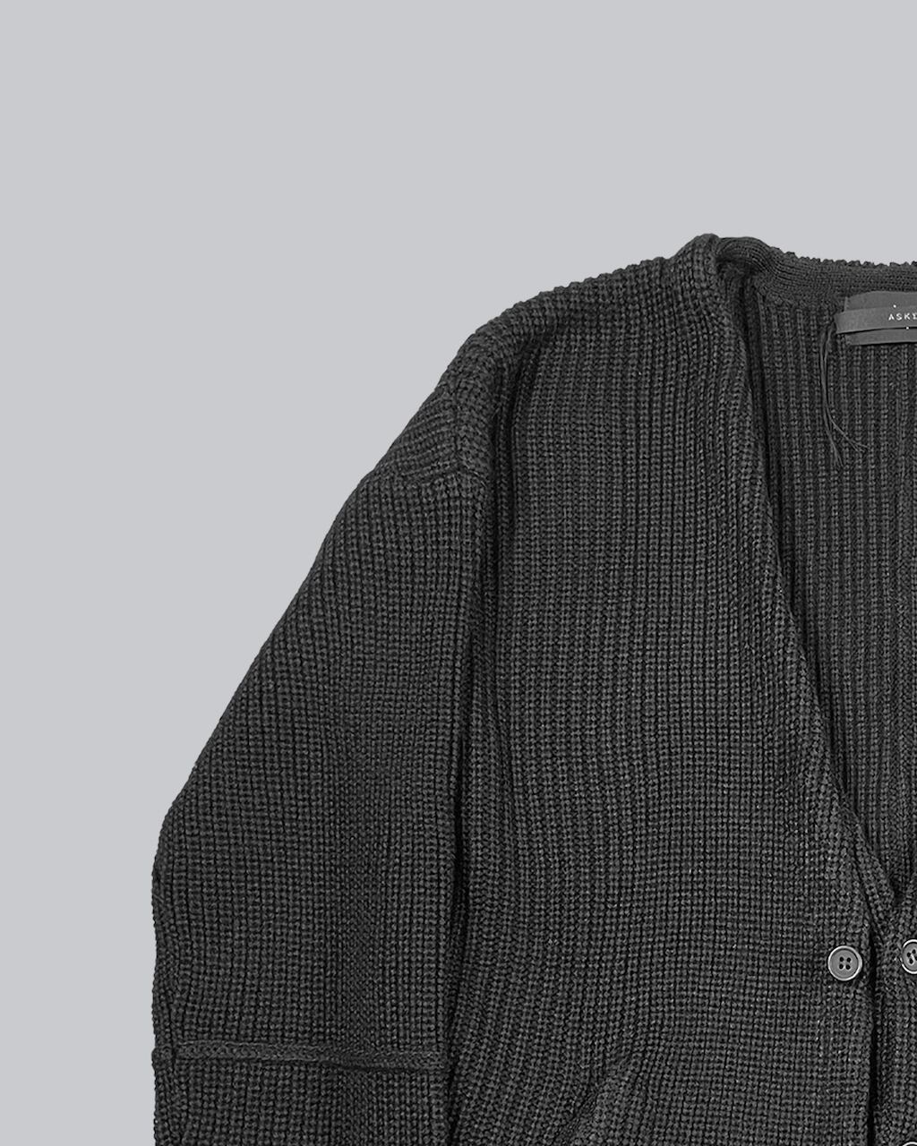 身頃を2枚仕立てとしフロントのレイヤーがアクセントとになったニットアウター。単調になりがちなカーディガンにアクセントをもたらし、コートのフロントを開けた状態でも2枚仕立ての分、インナーとして快適な暖かさを保つ。充分な厚みがあるローゲージの編み立てでざっくりラフな印象をつくり、シルエットもドロップショルダーでリラックスムード漂う一品。シンプルだからこそ細部にこだわり普遍的なデザインに落とし込んだ。
