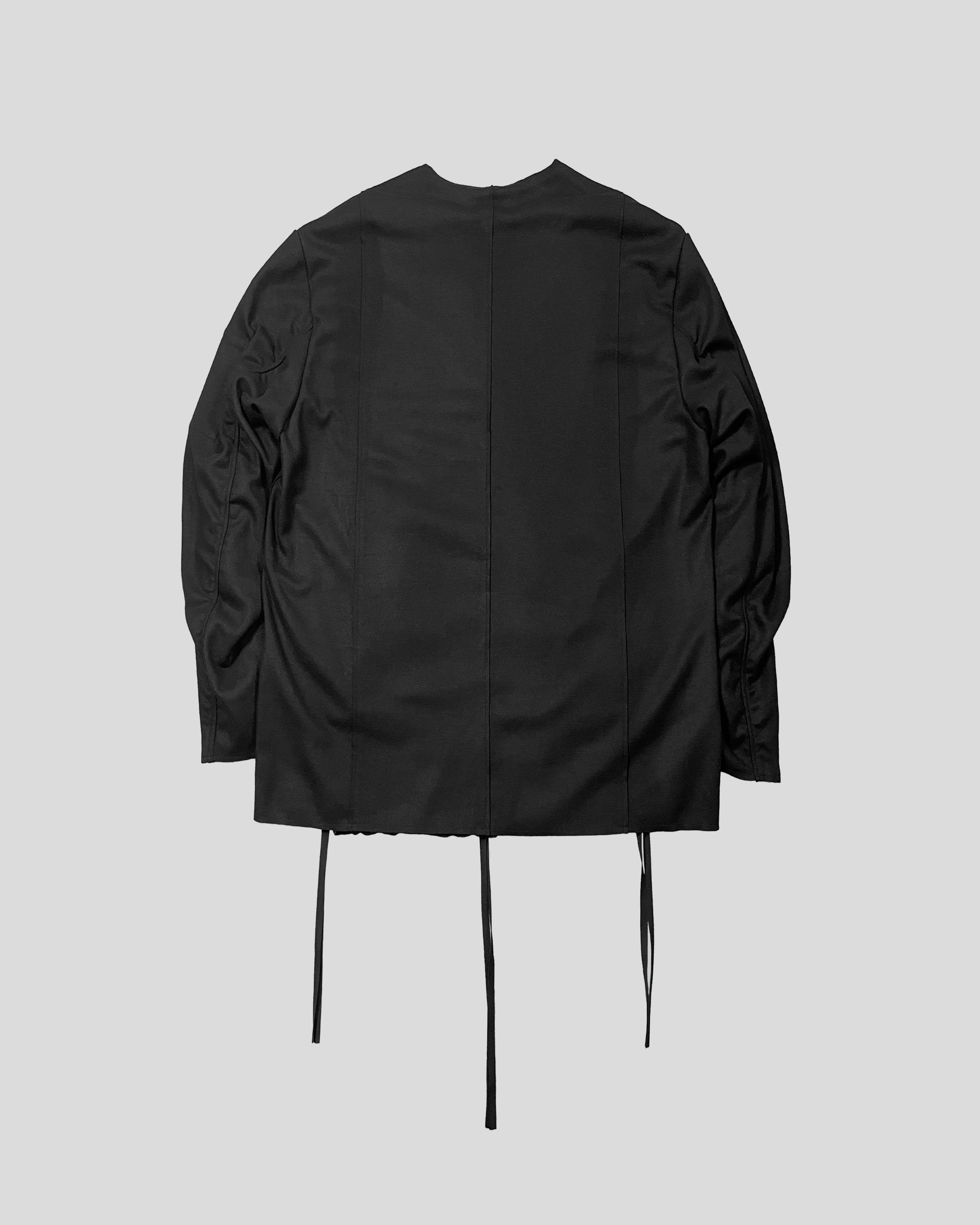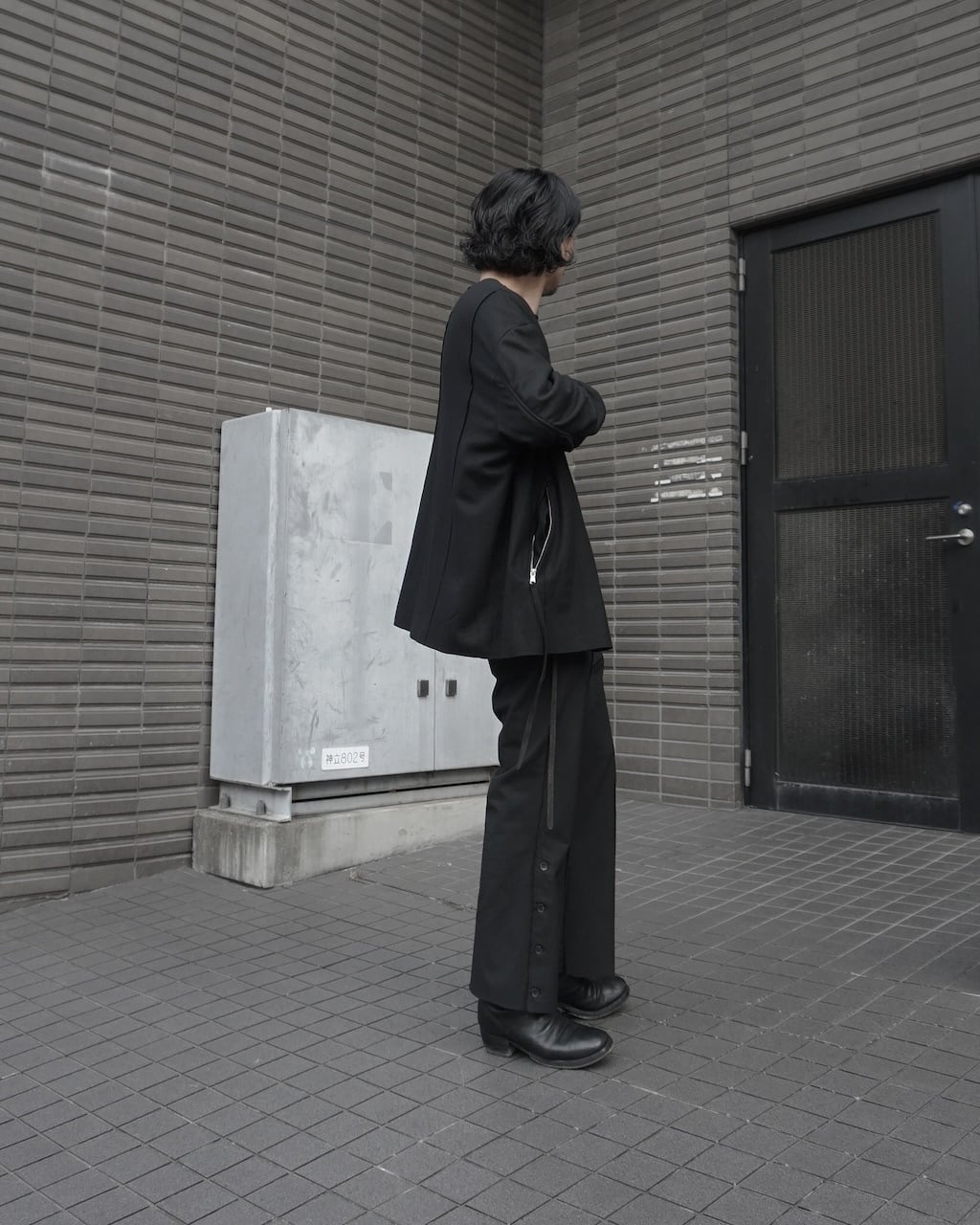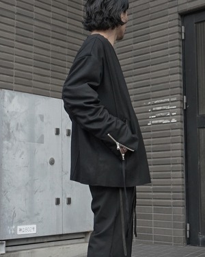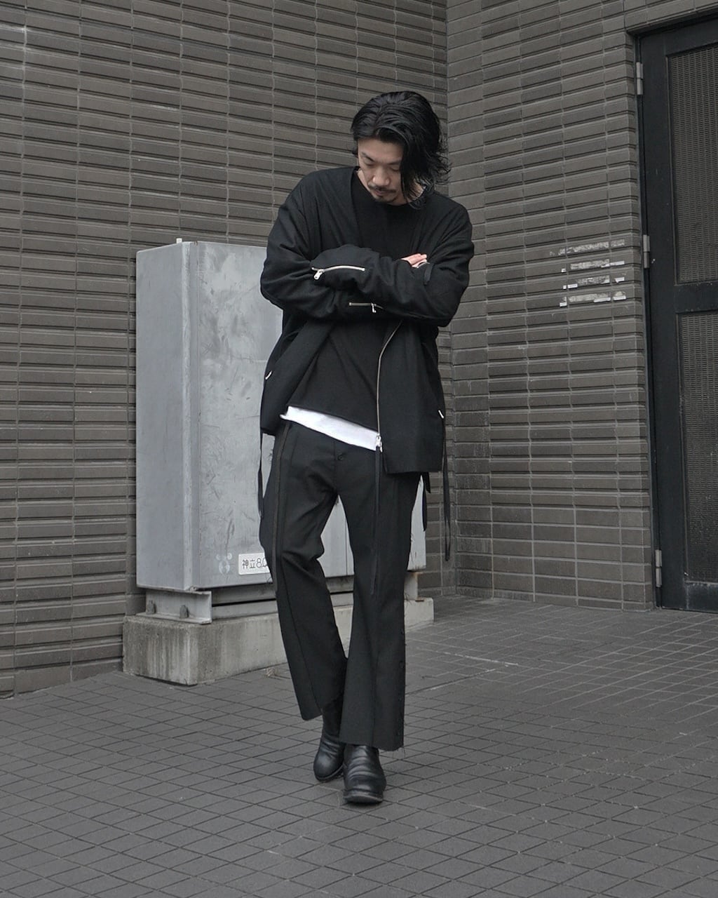 A bomber jacket that can be worn in the form of a cardigan. Its V-shaped front design and relaxed sizing offer a casual vibe similar to a cardigan, while incorporating military elements in the details. The distinctive arm design creates wrinkles and gathers by adding gathers, resulting in a three-dimensional finish.