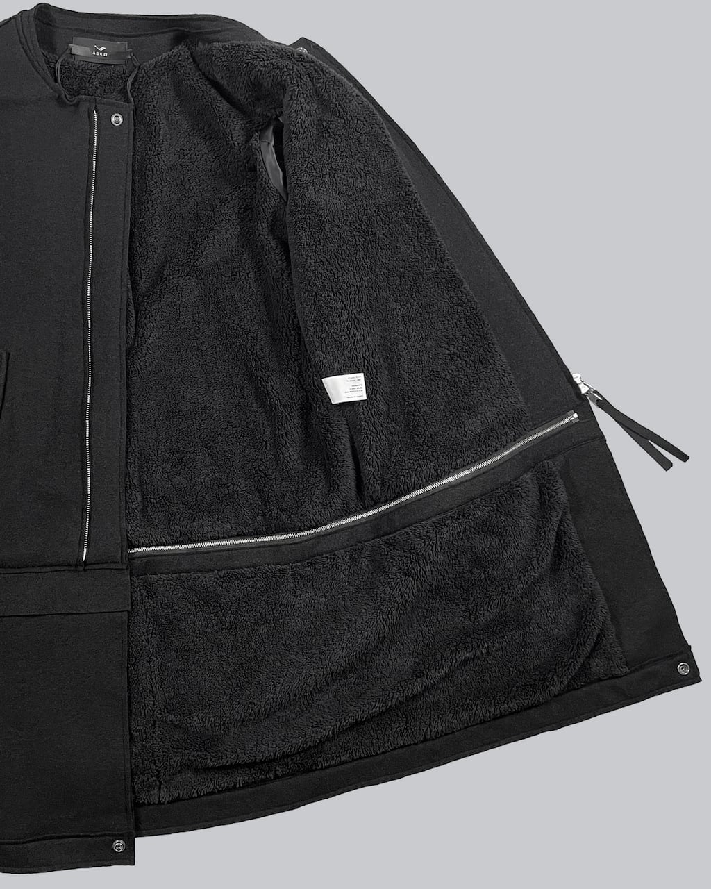 表地は軽さがある縮絨素材を用いており、裏地にはボアをつける事で防寒性も追求。見た目以上に軽く、ストレスのない万能なコートが完成。