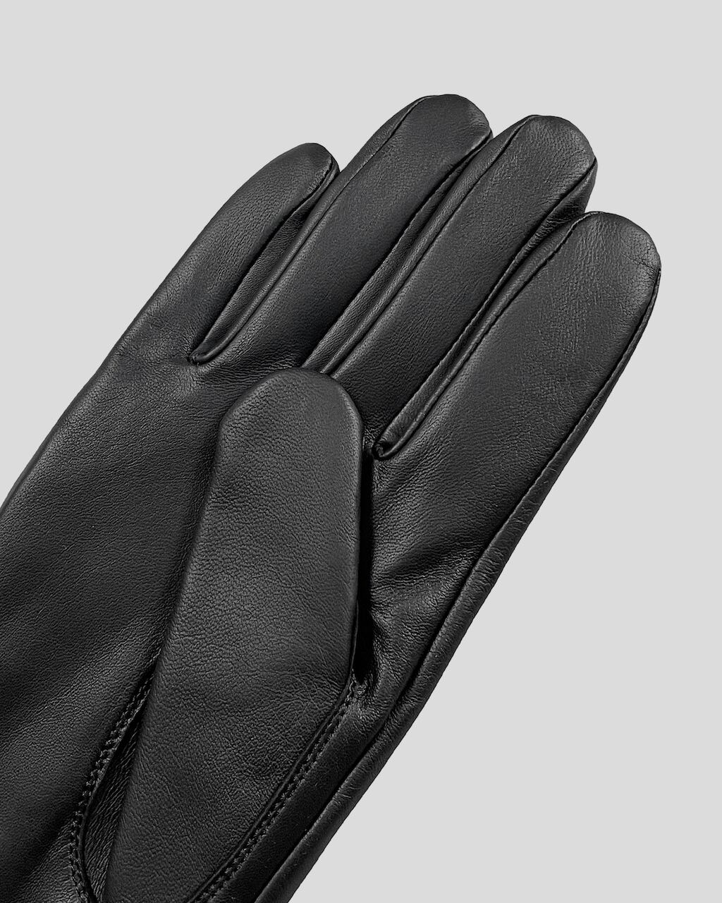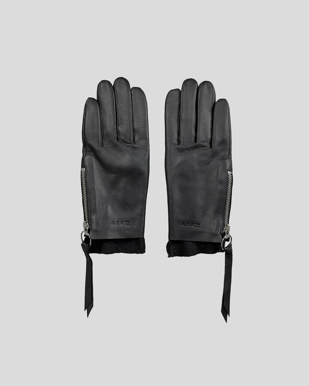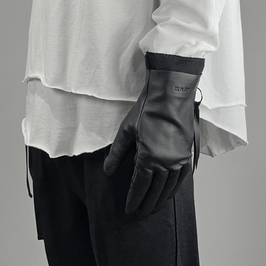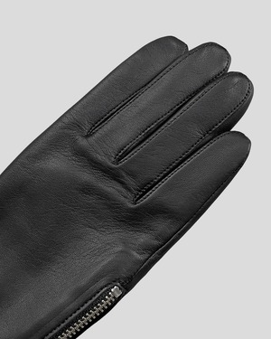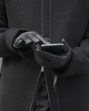 Leather gloves crafted with exceptionally soft high-quality lambskin leather. These gloves feature a knit material layered on the inside, providing both comfort and warmth. The side zip on the cuffs shapes the opening, creating a sleek and smart form. The design is meticulously crafted, resulting in a completely original shape.