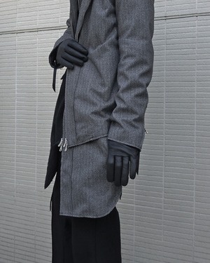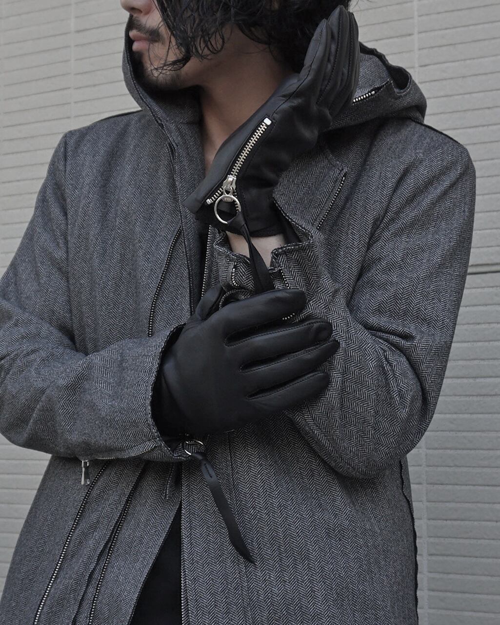 大変柔らかい上質なラムレザーを用いたレザーグローブ。暖かな裏地素材をはみ出させレイヤードさせたASKYYらしいアイコン。それに加え、サイドジップによってシェイプを可能にした手首部分。指先も細く仕上げスマートなフォルムにこだわった完全オリジナルの型。