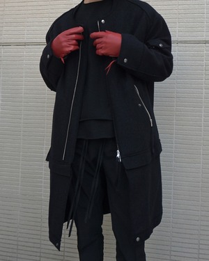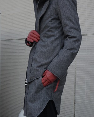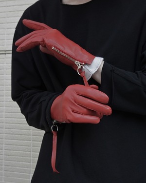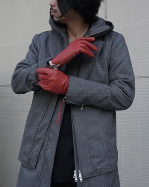大変柔らかい上質なラムレザーを用いたレザーグローブ。暖かな裏地素材をはみ出させレイヤードさせたASKYYらしいアイコン。それに加え、サイドジップによってシェイプを可能にした手首部分。指先も細く仕上げスマートなフォルムにこだわった完全オリジナルの型。