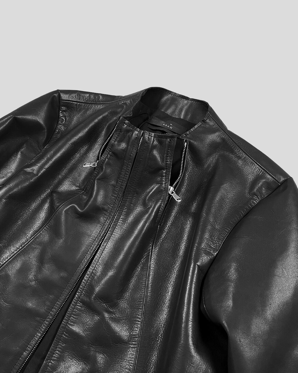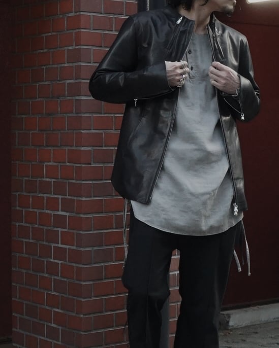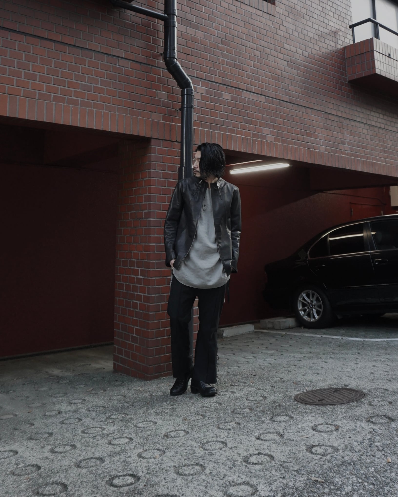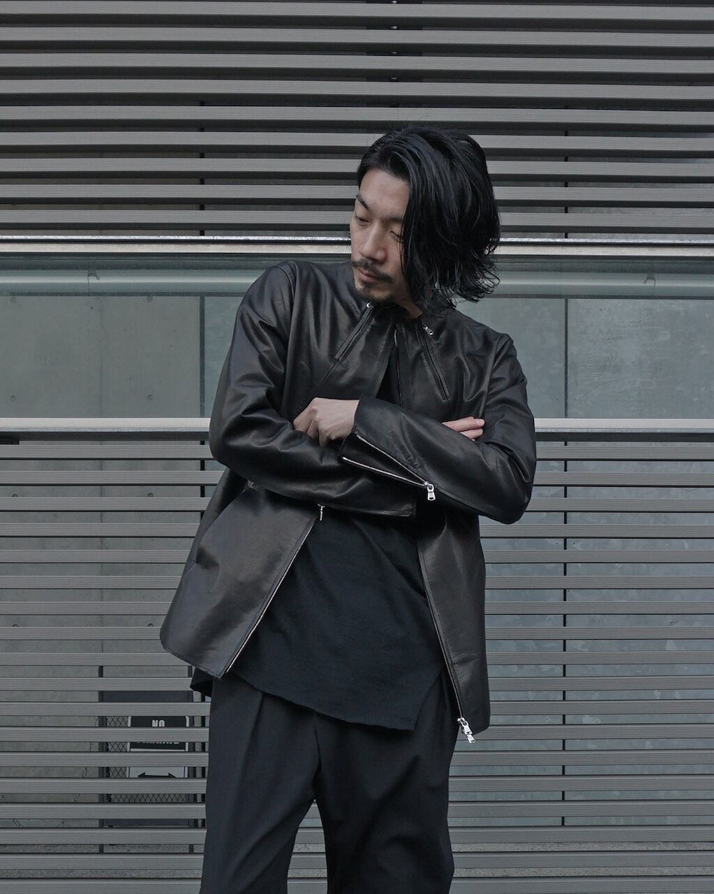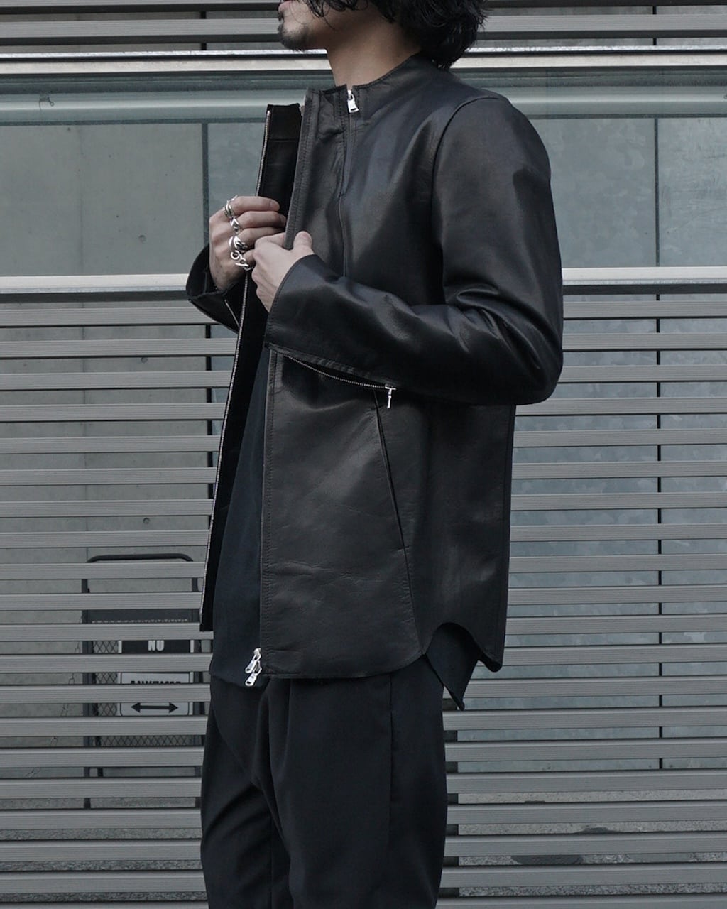 年末年始恒例となった新作レザーの完全受注生産品。今シーズンはASKYYで定番であるシングルレザーのアウトラインをそのままに受け継ぎつつ、各部のデザインをフルアップデート。裾のレイヤーをフラットにし、首元に新たに付与したネックジップによって新シーズンらしくも普遍的で使いやすいデザインへ仕上げている。硬派なモード感と削ぎ落とされたミニマルさを併せ持つラグジュアリーな一品が完成。