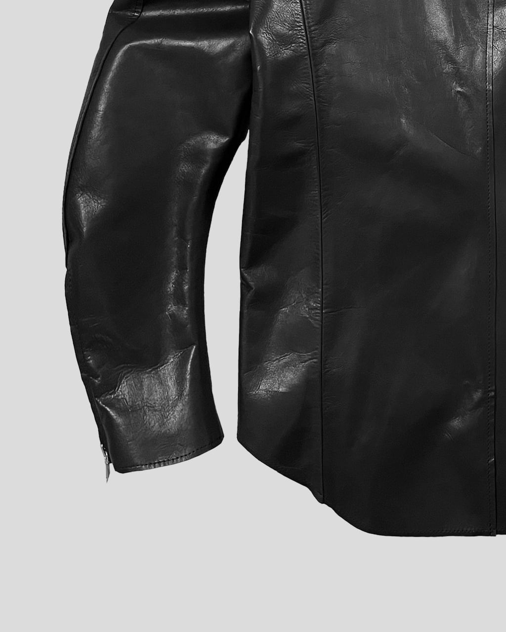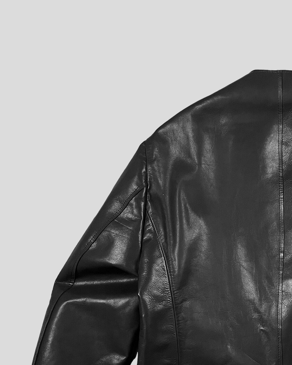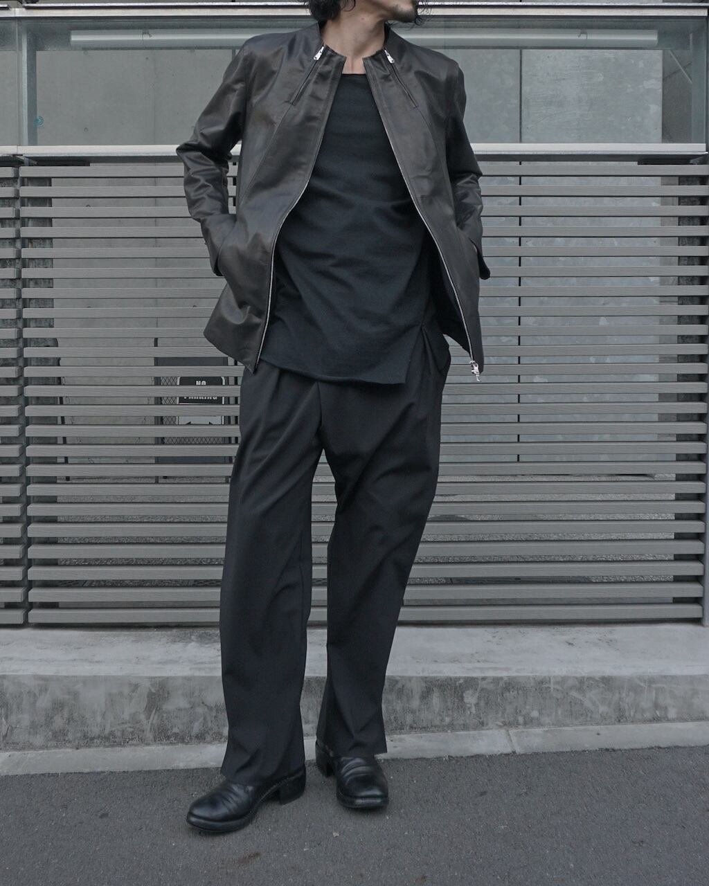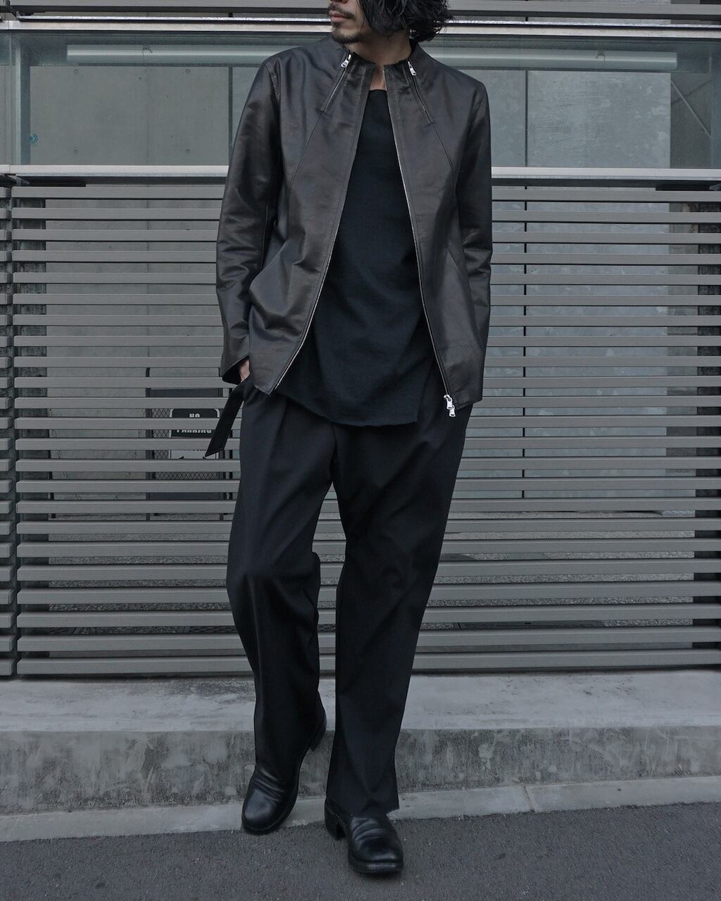 年末年始恒例となった新作レザーの完全受注生産品。今シーズンはASKYYで定番であるシングルレザーのアウトラインをそのままに受け継ぎつつ、各部のデザインをフルアップデート。裾のレイヤーをフラットにし、首元に新たに付与したネックジップによって新シーズンらしくも普遍的で使いやすいデザインへ仕上げている。硬派なモード感と削ぎ落とされたミニマルさを併せ持つラグジュアリーな一品が完成。