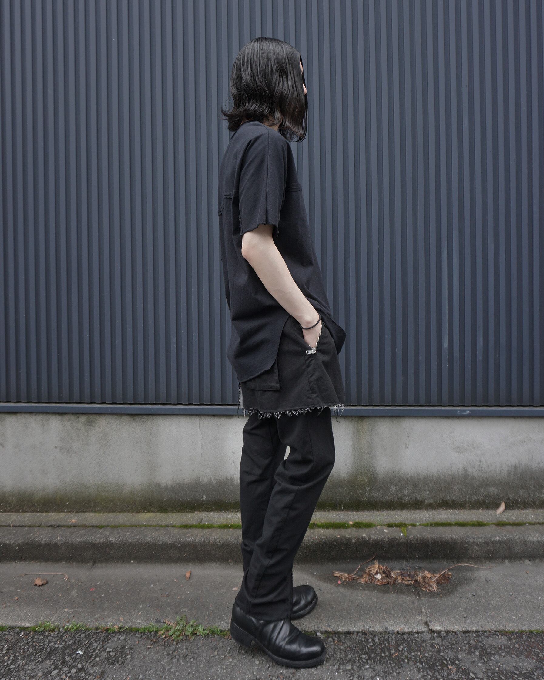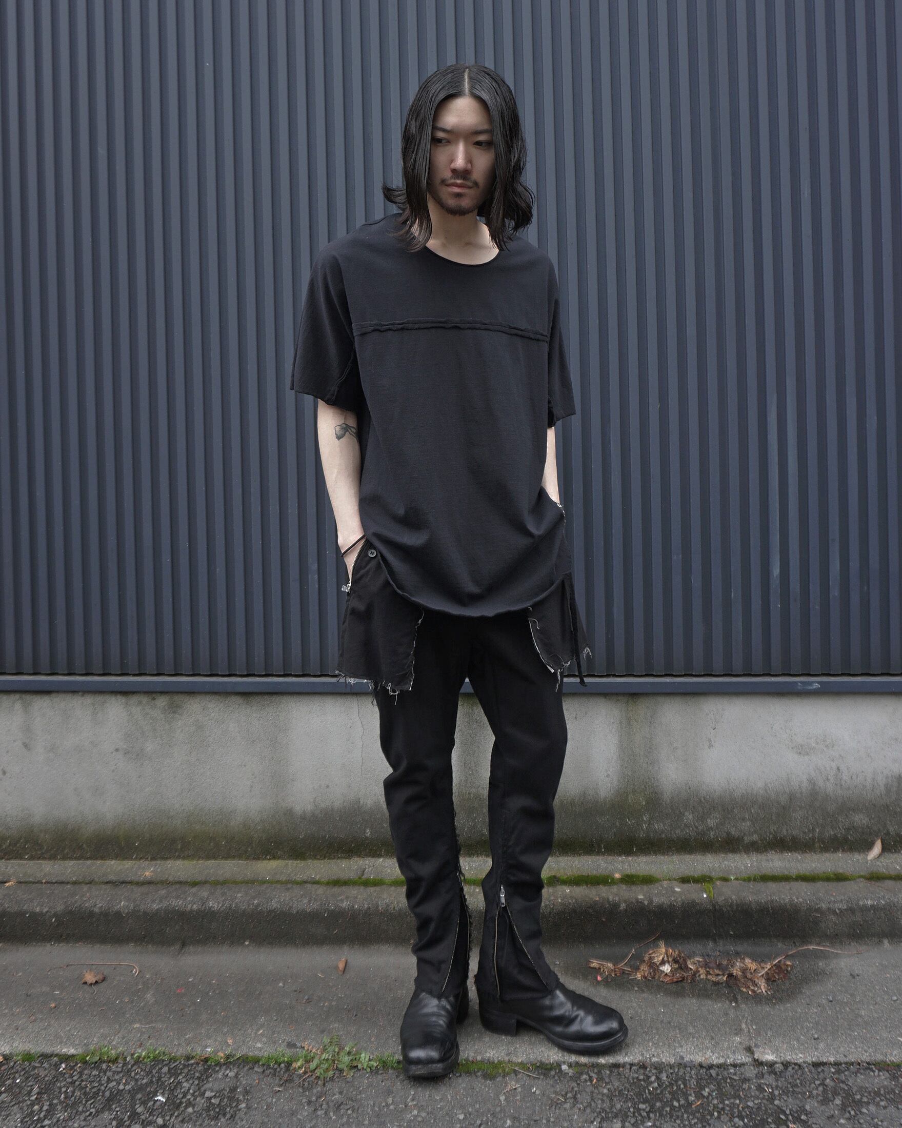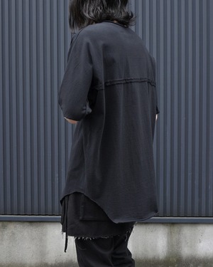 ヘビーウェイトの素材を用いた「透けない」カットソー。大変持ちが良く、洗濯を繰り返す夏場でもタフな素材で気兼ねなく着用できる1枚。肩線を排除しドルマンスリーブのような作りにすることでそれぞれの身体に自然と馴染む設計になっている。オーバーサイズの懸念を払拭した新たなパターンで流行りにも左右されない普遍的な1枚に仕上げた。