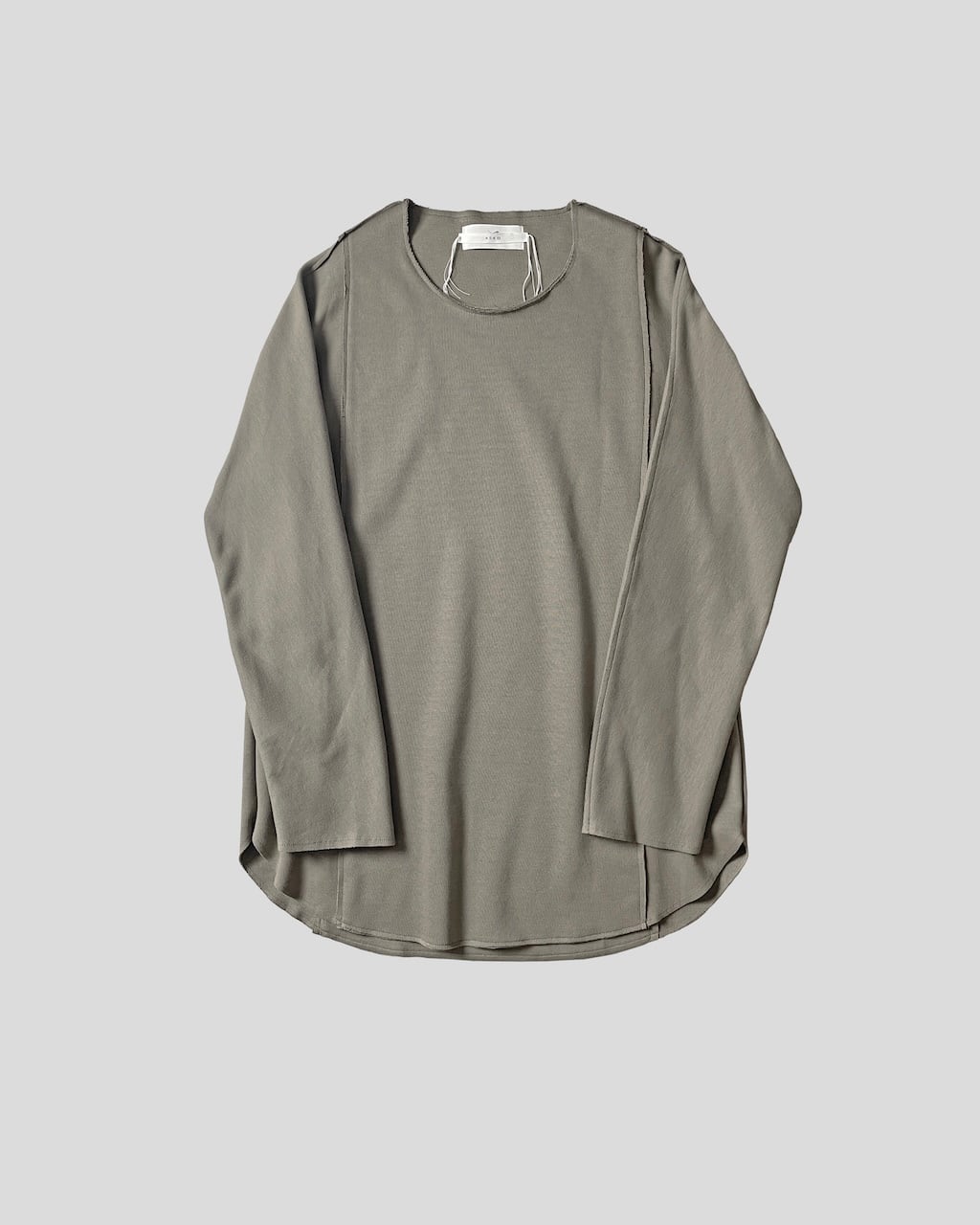 肩線を排除したラグランスリーブによって窮屈感なく気楽に着用が可能となるプルオーバー。通常のセットインスリーブとは違いラフなリラックス感を持ち合わせており、さらに裾のリブなどを無くすことでコンパクトかつシャープな印象のスウェットを制作。インナーとして心強いタフさがあり、防寒性も十分な冬のインナー。過度な装飾を抑えたミニマルなデザインで汎用性も高く、長年愛用頂ける高品質のスウェットが完成した。