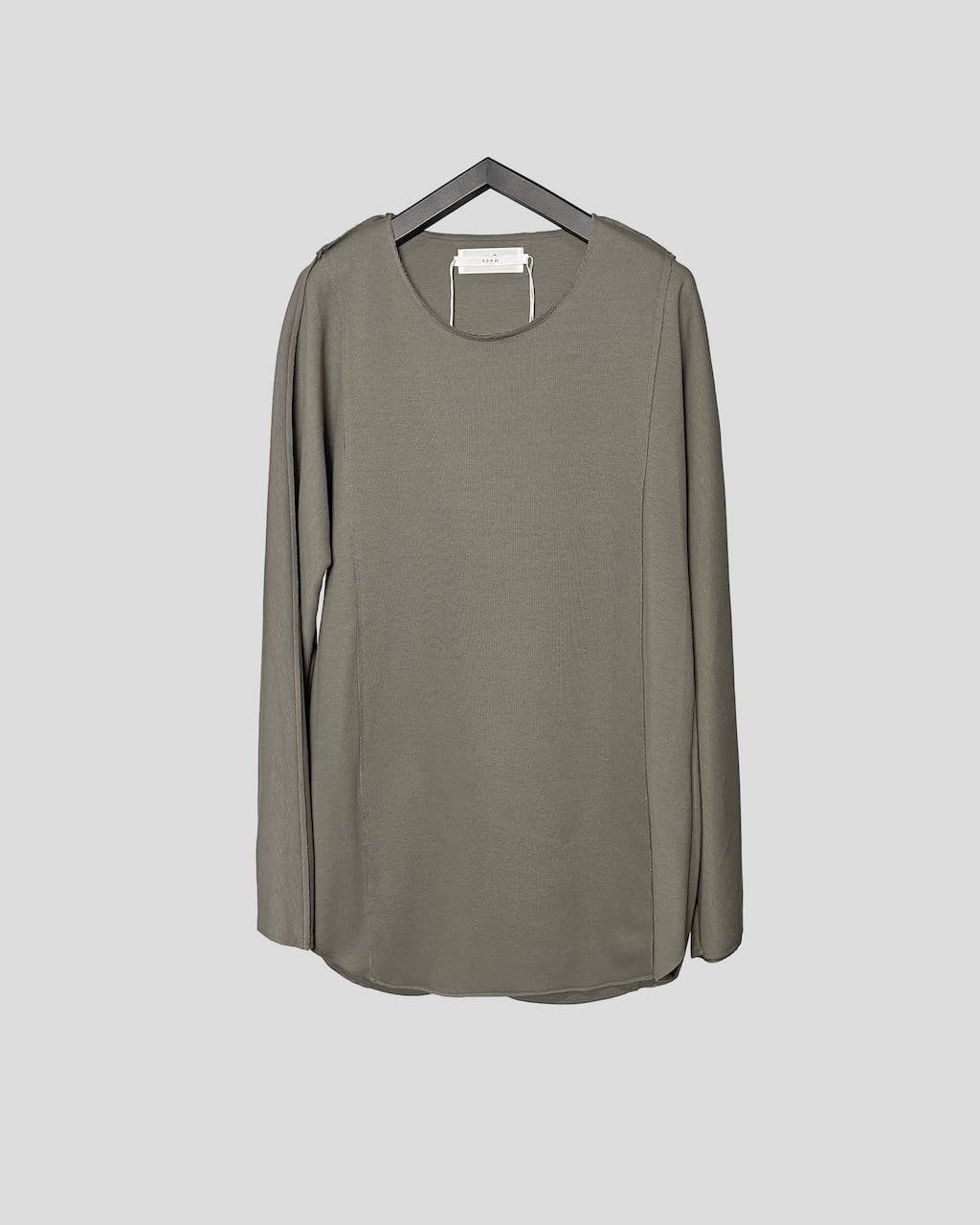 Made from heavy jersey, the fabric is firm yet smooth, ideal for fall and winter. It features a double-faced construction, eliminating the loops commonly seen on the reverse side of fleece, resulting in a softer texture against the skin. The clean, refined texture avoids the typical casual look of sweatshirts. The fabric is soft and resilient, offering high durability and long-lasting wear, with a substantial thickness that’s perfect for cooler weather.