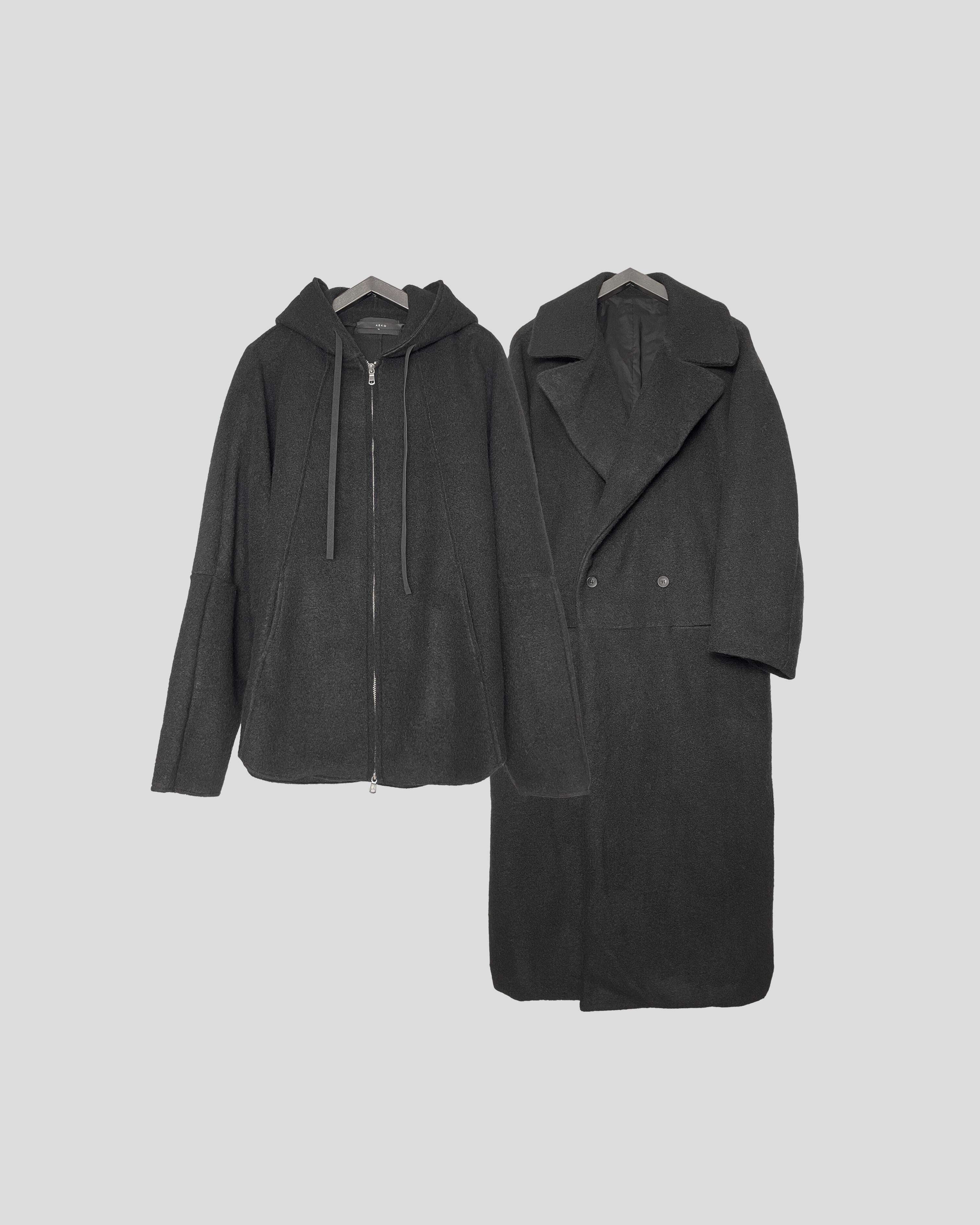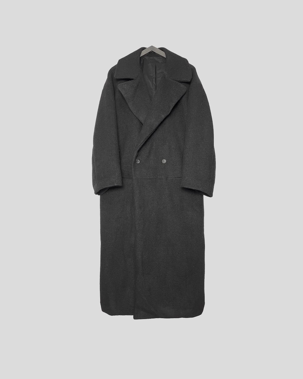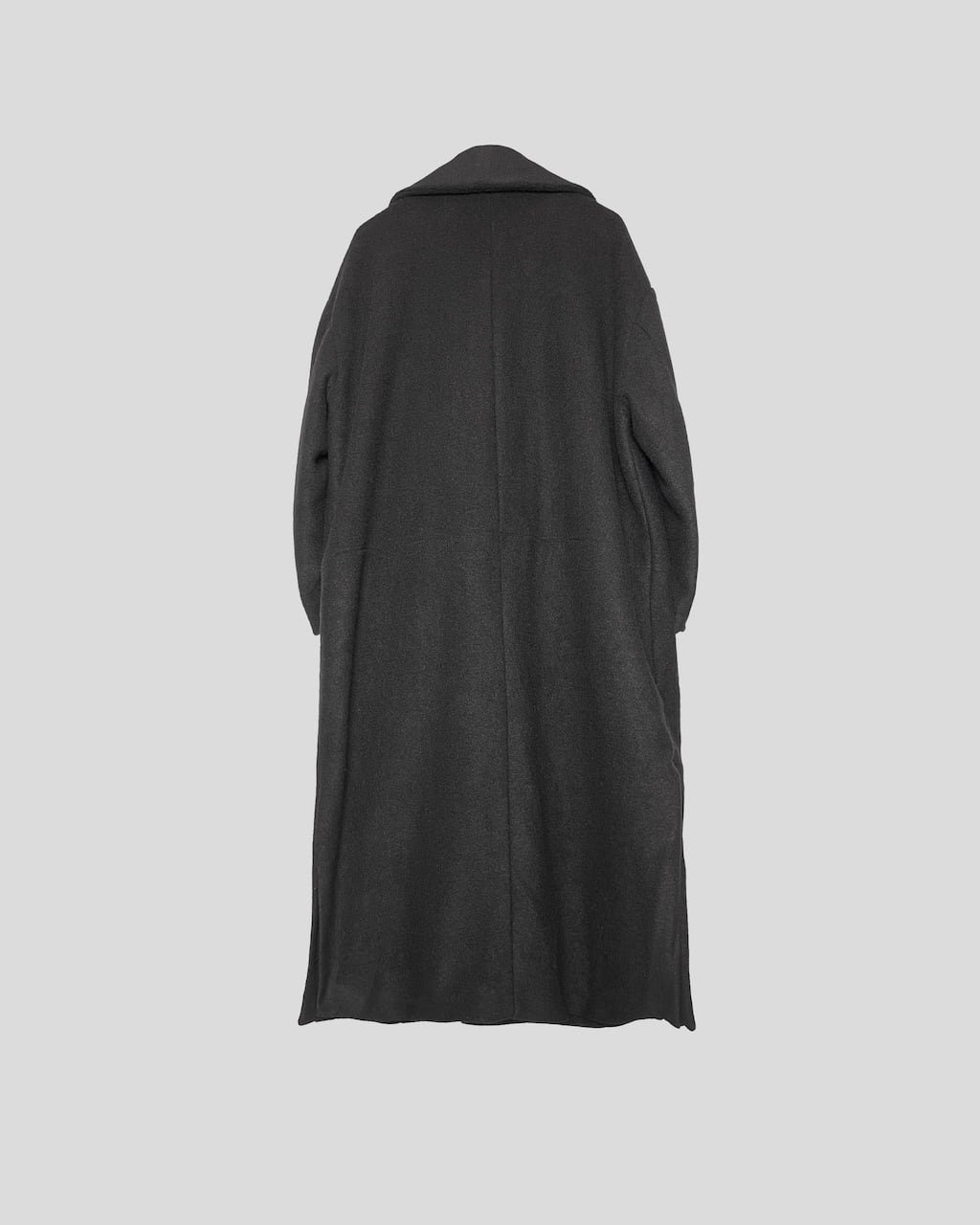A new double-breasted coat crafted with a timeless design. While maintaining a strong sense of classic elegance, the contrast with its soft, gentle material adds depth and embodies ASKYY's unique originality. This signature piece of the season balances a refined, subdued impression with modern style, effortlessly incorporating contemporary trends. The generously enveloping silhouette, created with an ample use of fabric, exudes luxury while boasting an unexpectedly lightweight feel. A one-of-a-kind creation that can even be layered over an existing coat, offering unmatched versatility.