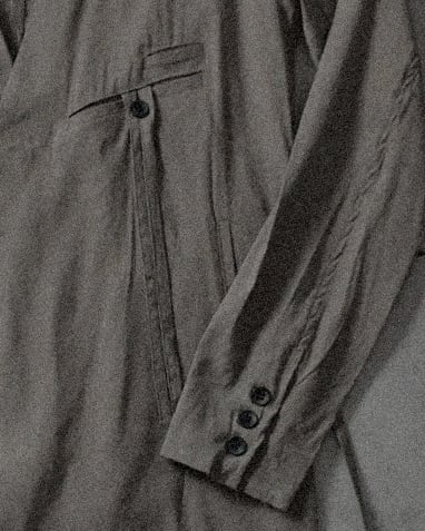 A new coat crafted from stretch linen. The lightweight linen fabric ensures a breezy and refreshing feel, preventing stuffiness even in summer. With each wear, the unique wrinkles of linen deepen, shaping a refined and sophisticated style. The chest features the iconic twin cords, while the waist tie, when lightly knotted at the back, adds a robe-like nuance. Additionally, the cords can be threaded through discreet side openings and left to drape inside. The raw-cut hem enhances a grunge aesthetic, with the swaying cords further emphasizing the mood. ASKYY’s first-ever linen coat has finally been born.